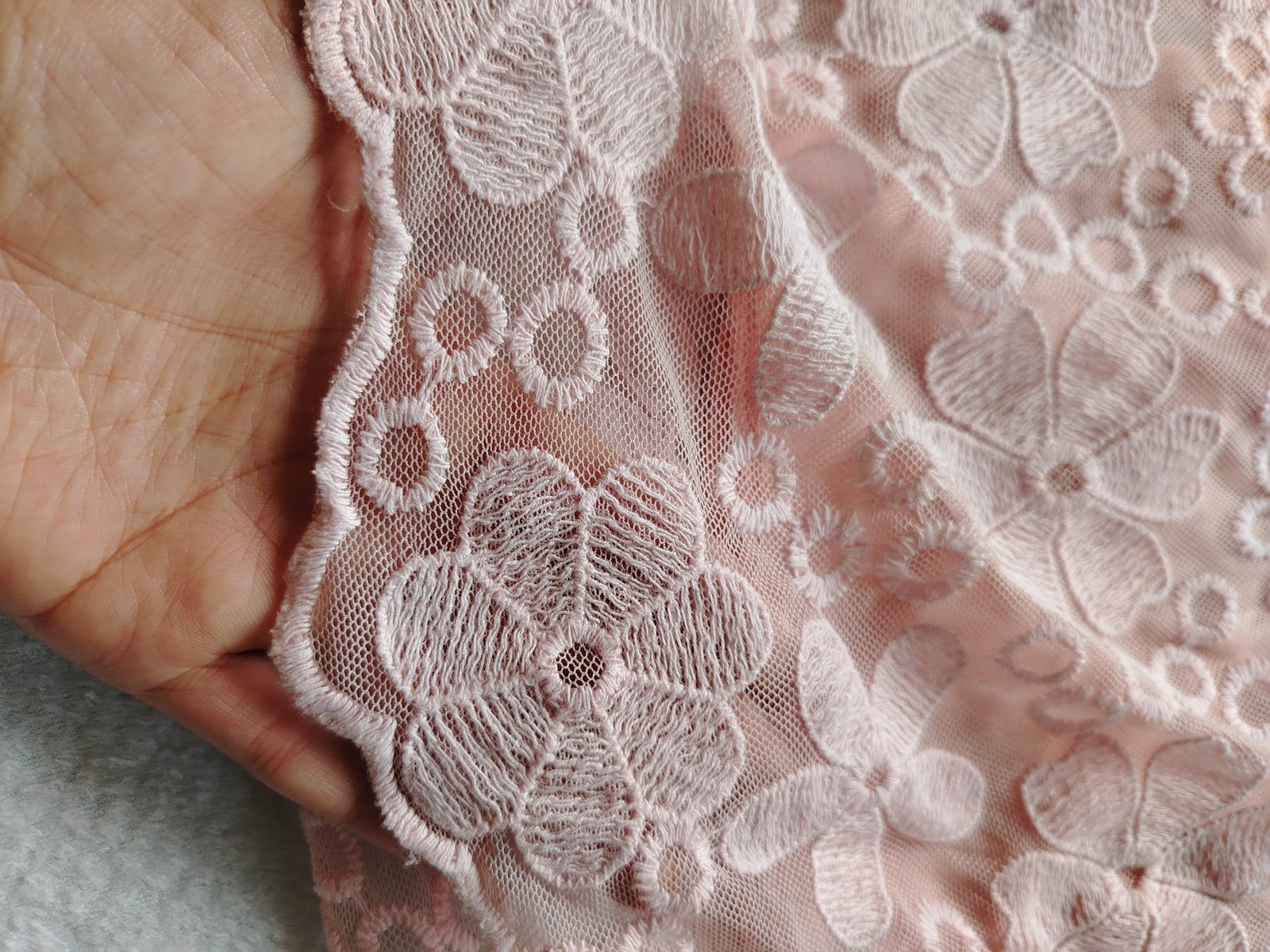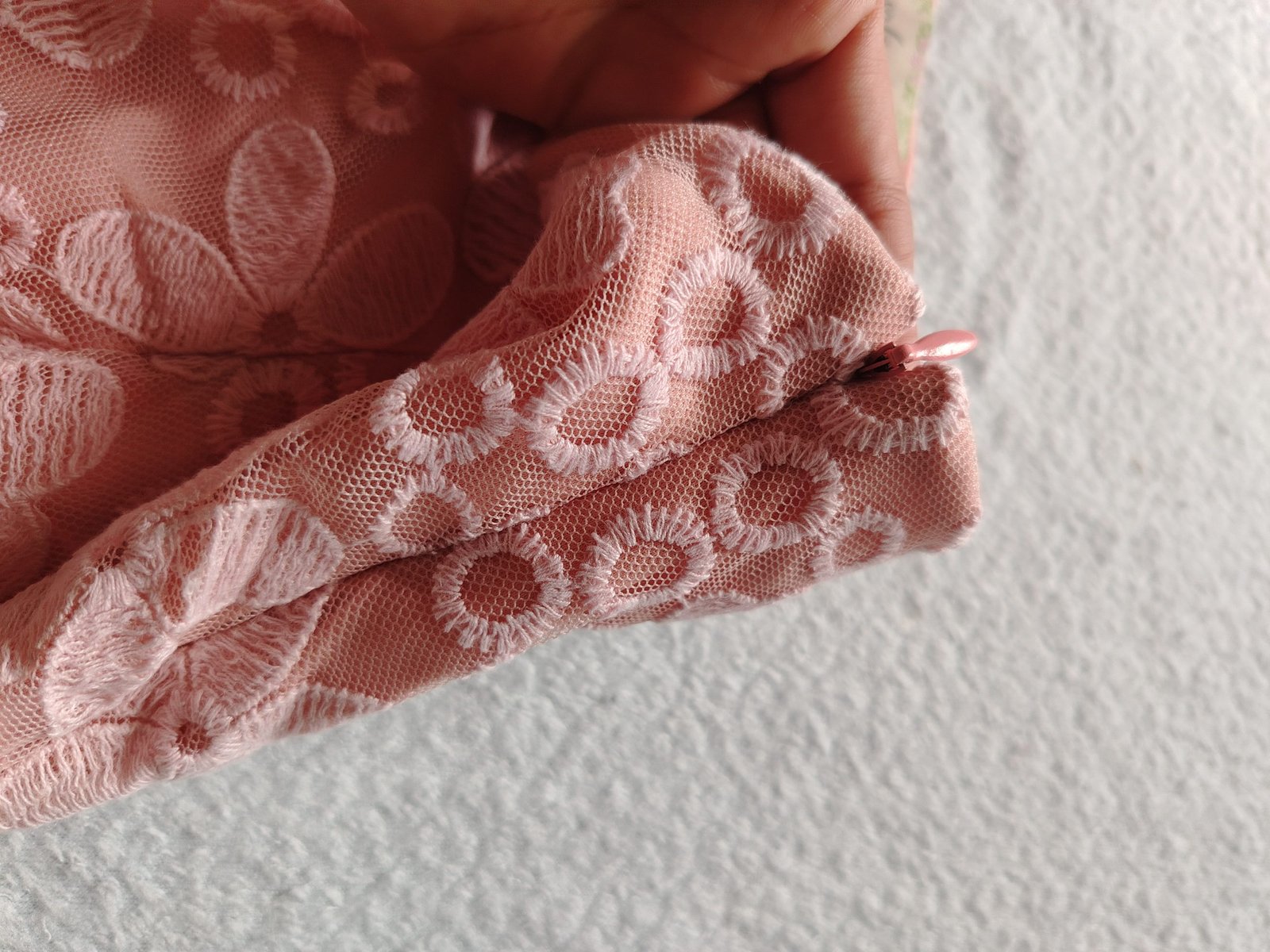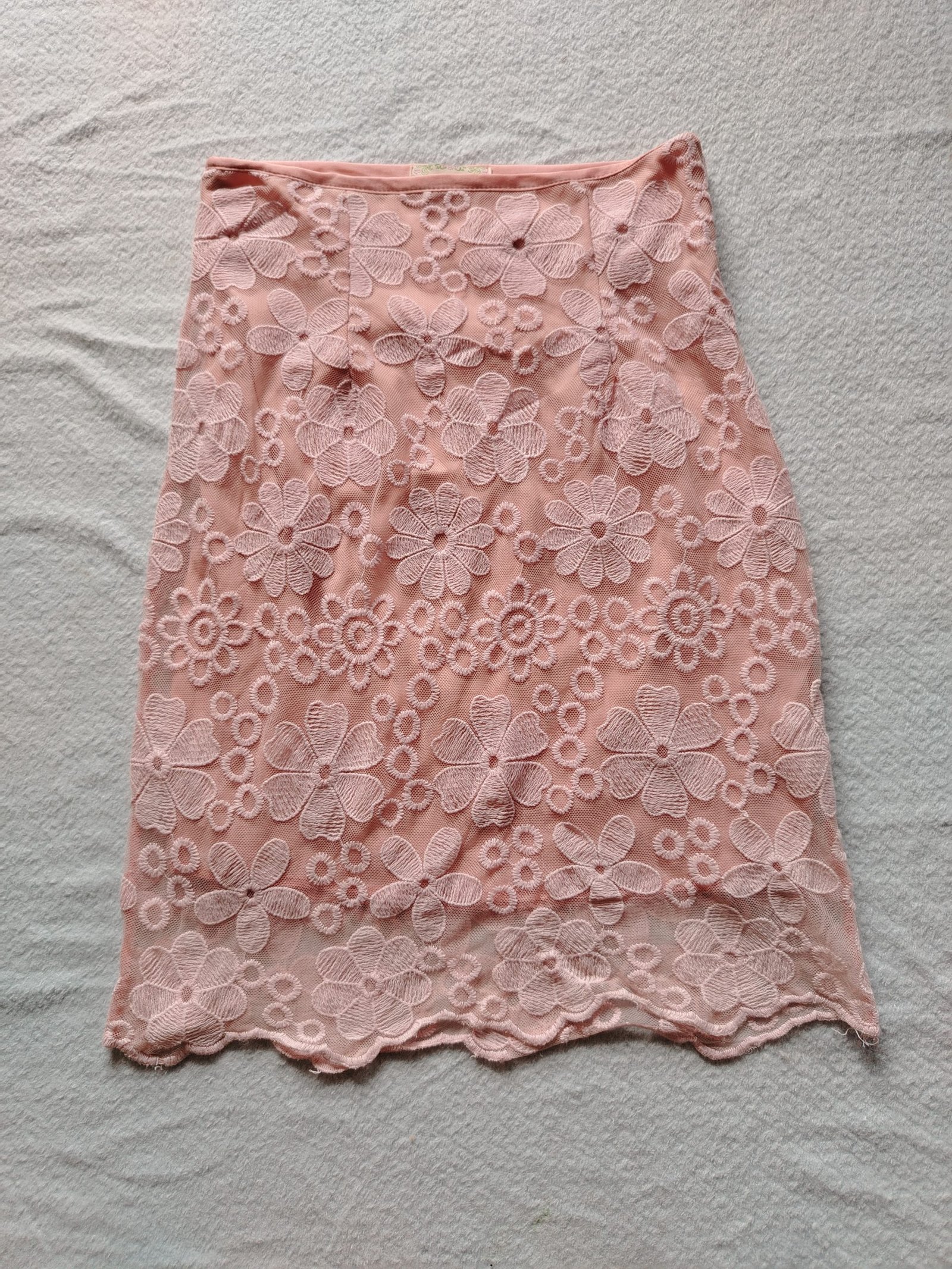 Falda color rosa, el detalle encajado da un toque delicado y coquette.