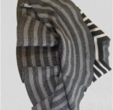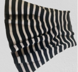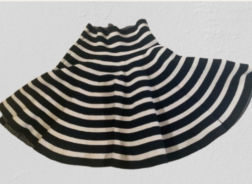 Falda acampanada blanco con negro, tiene una tela elástica que va con muchas tallas.