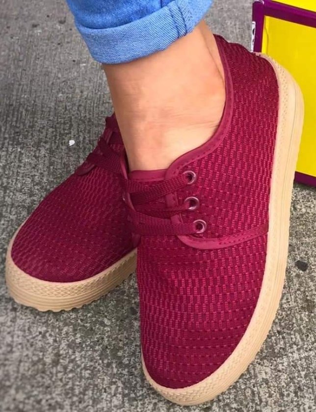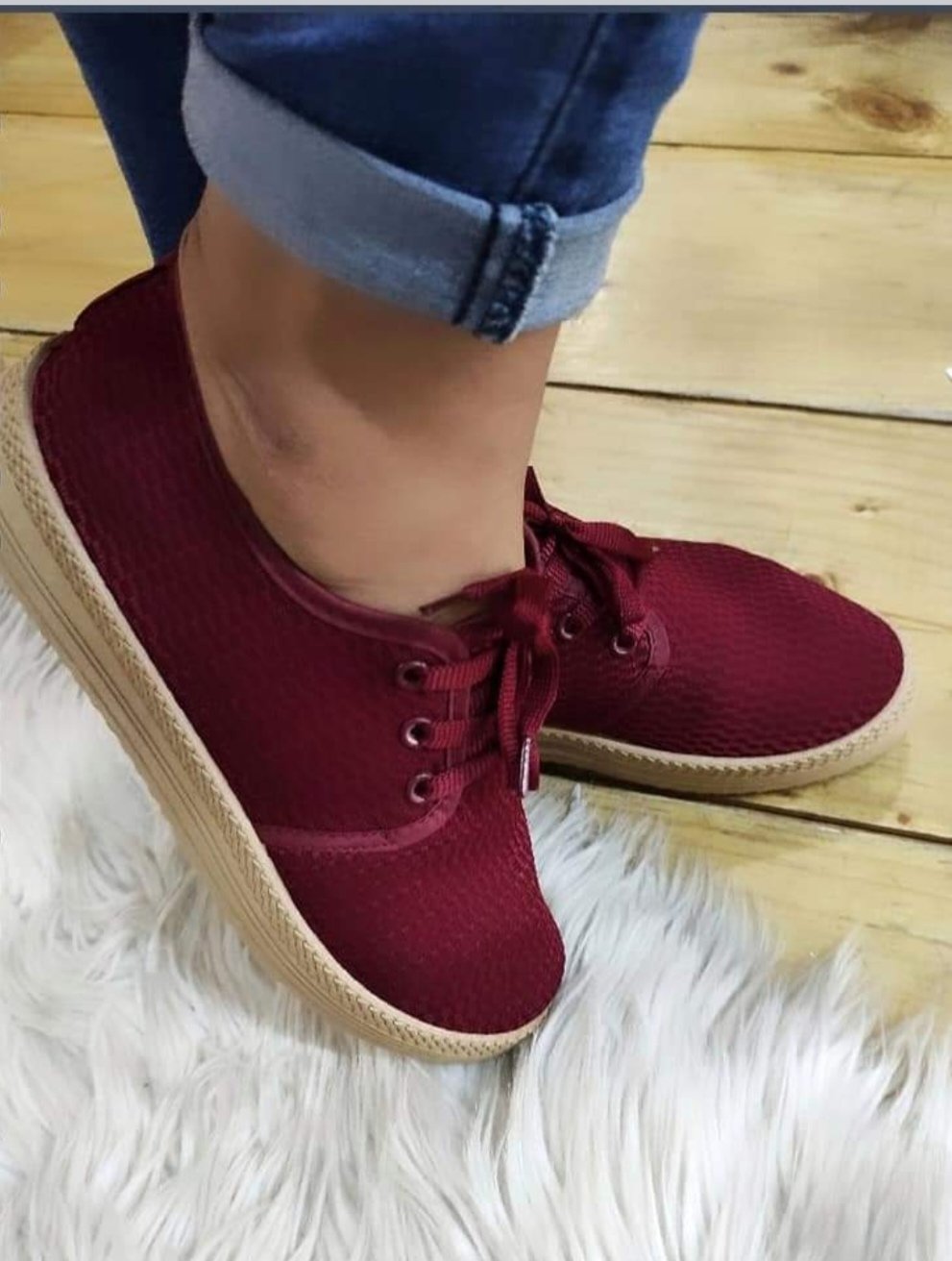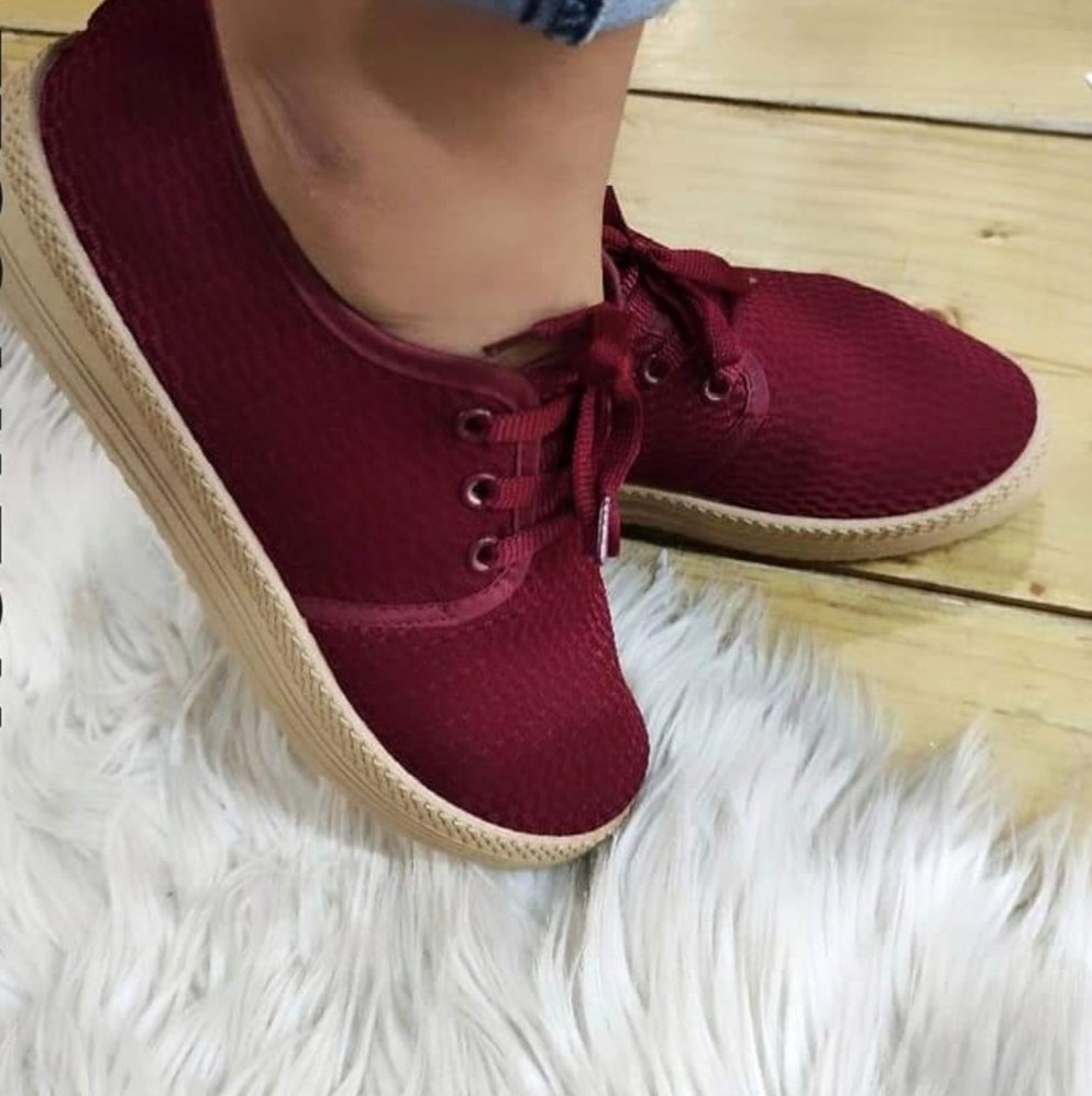 Hermosas y comodas tennis diseño alpargatas, material tela, de color rojo vino y totalmente nuevas, sin ningun uso. Talla 40 pero corren chicas como una talla 9. Es una super opción para vestir con jeans, shorts o skinie jeans.