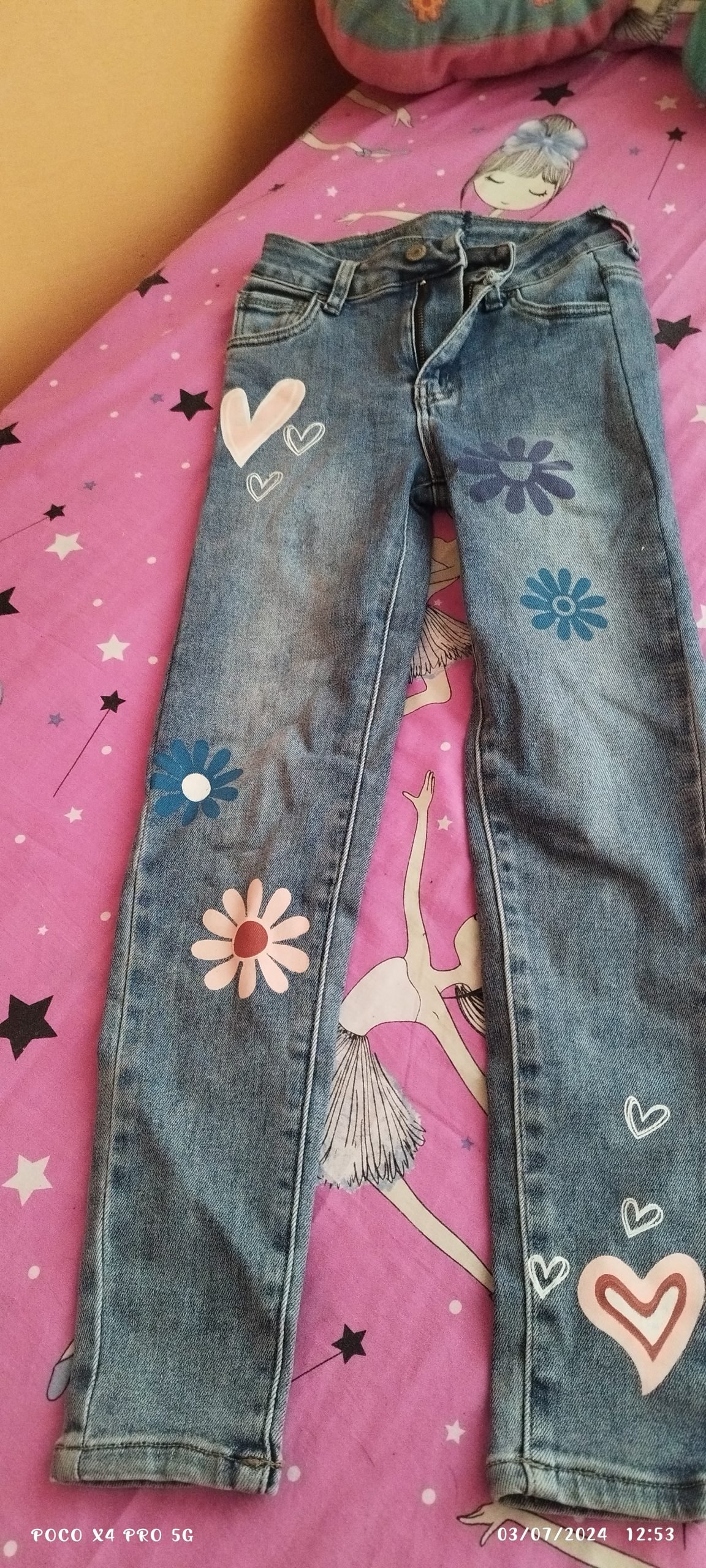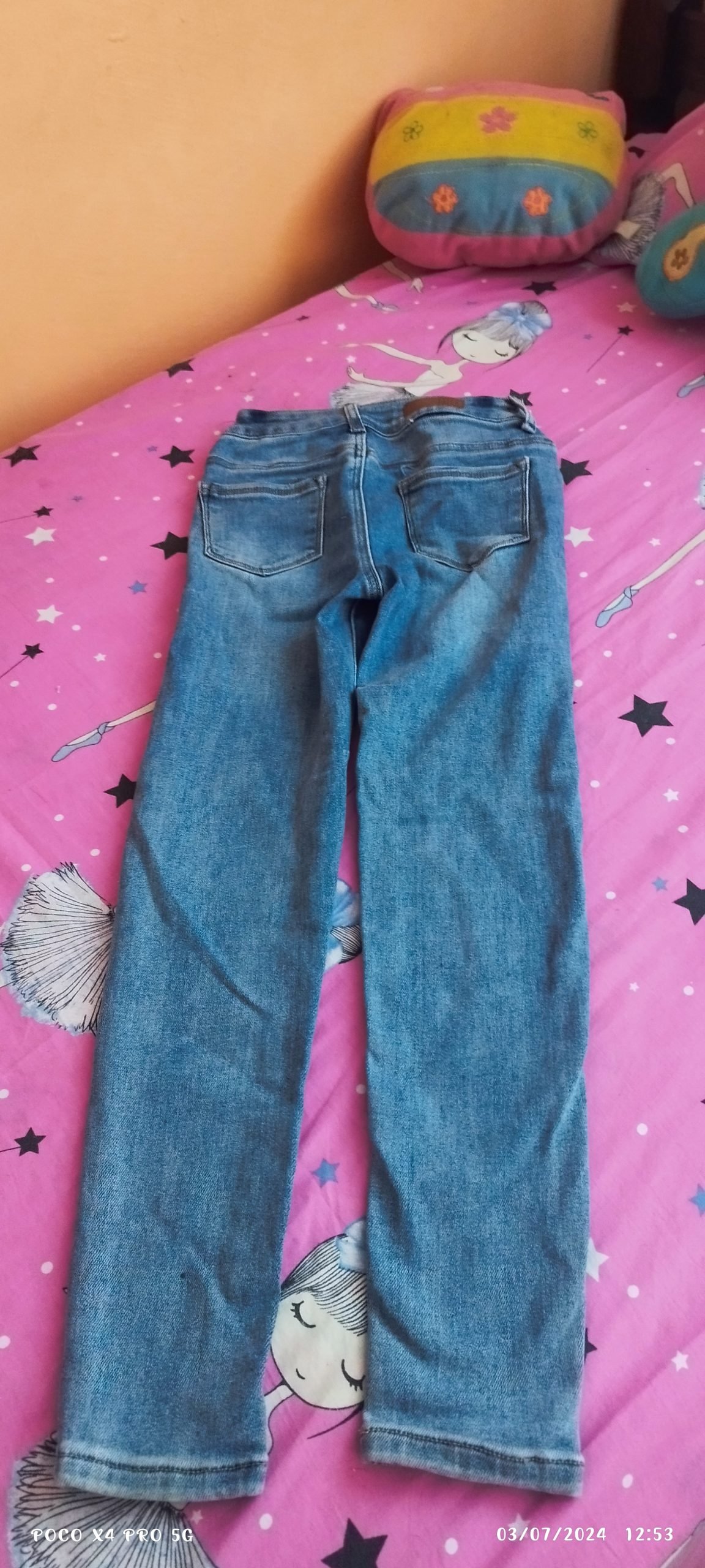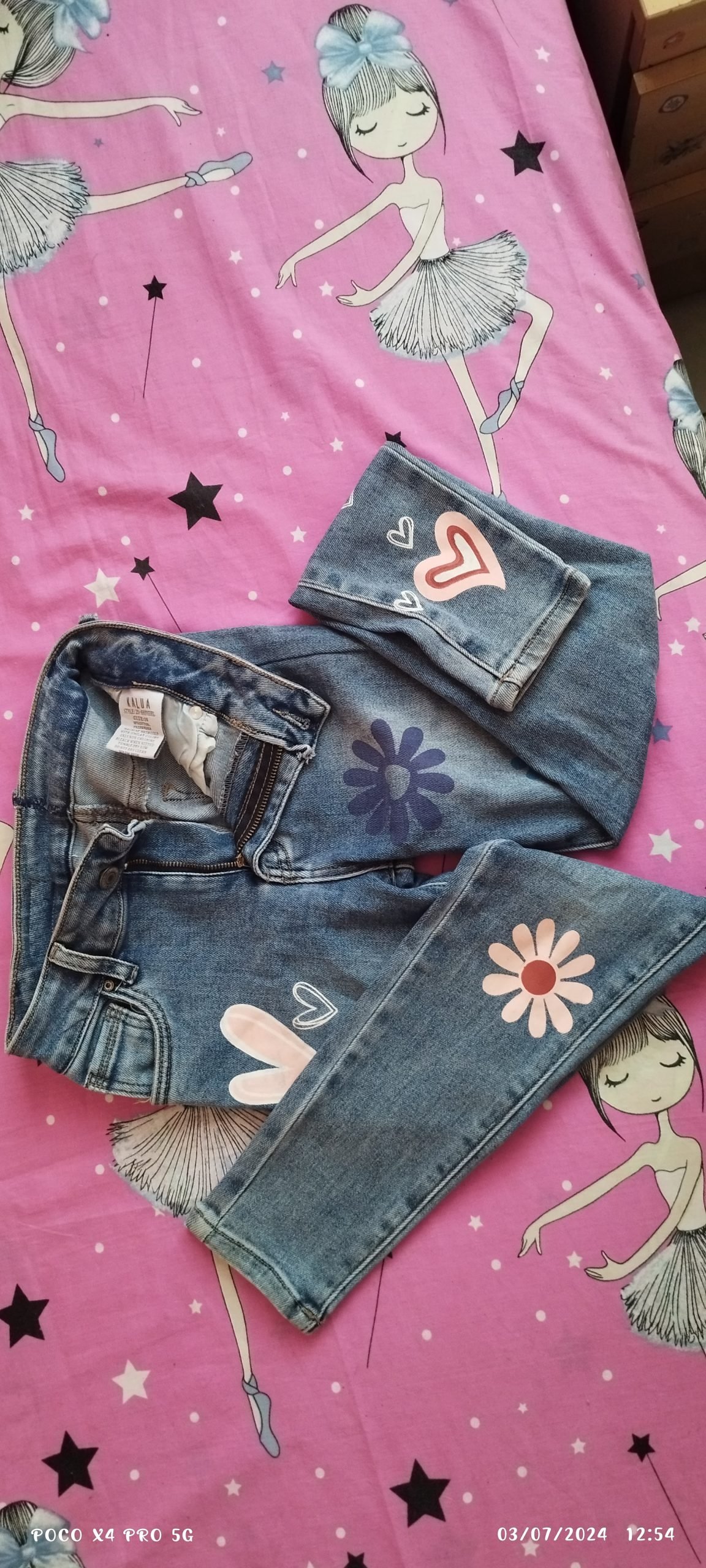 Jeans celeste, con diseños para niña, talla 14 cantidad