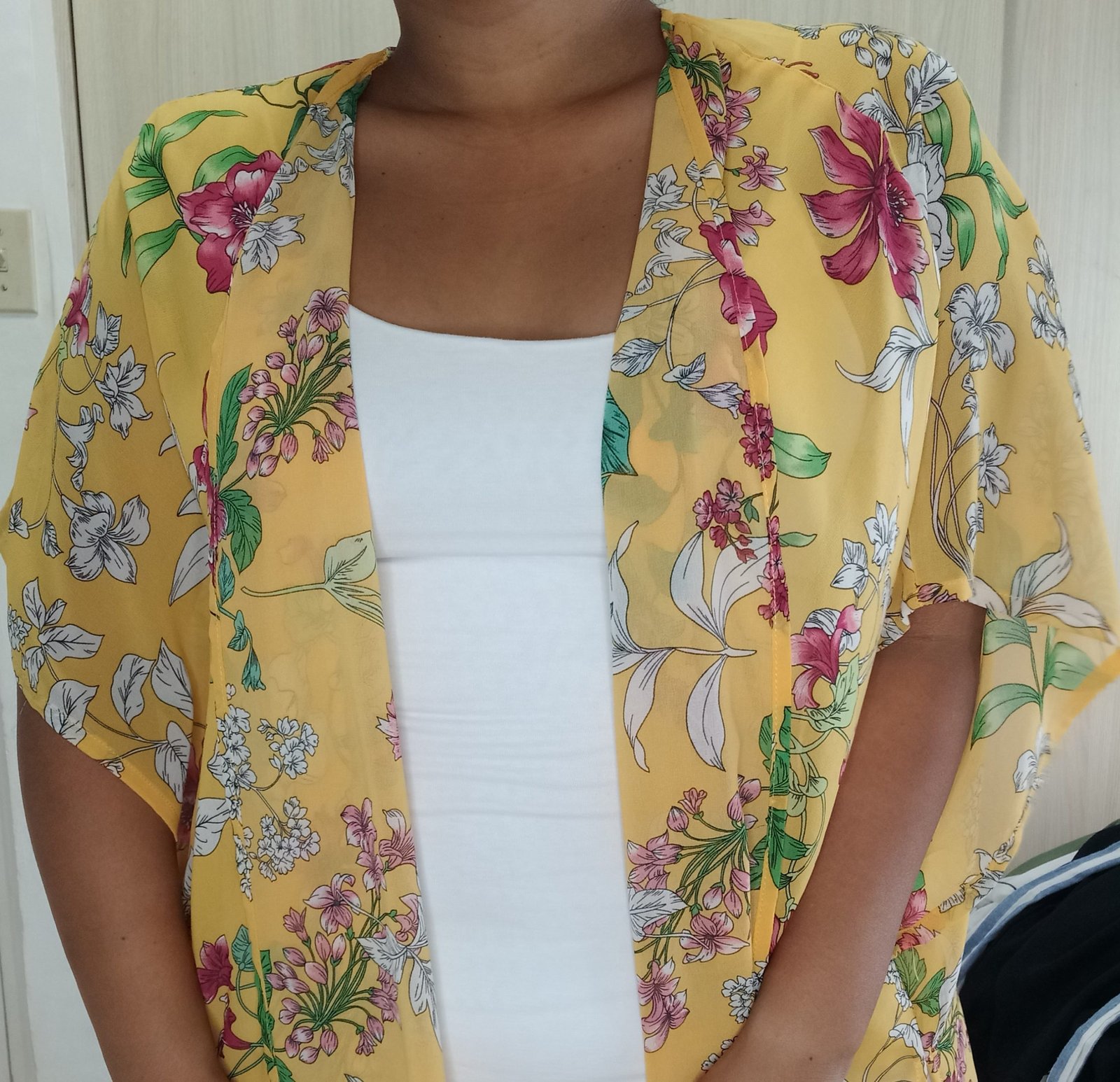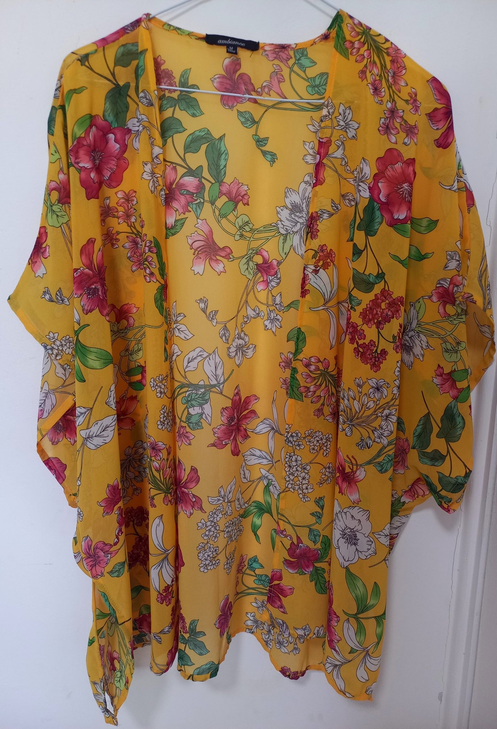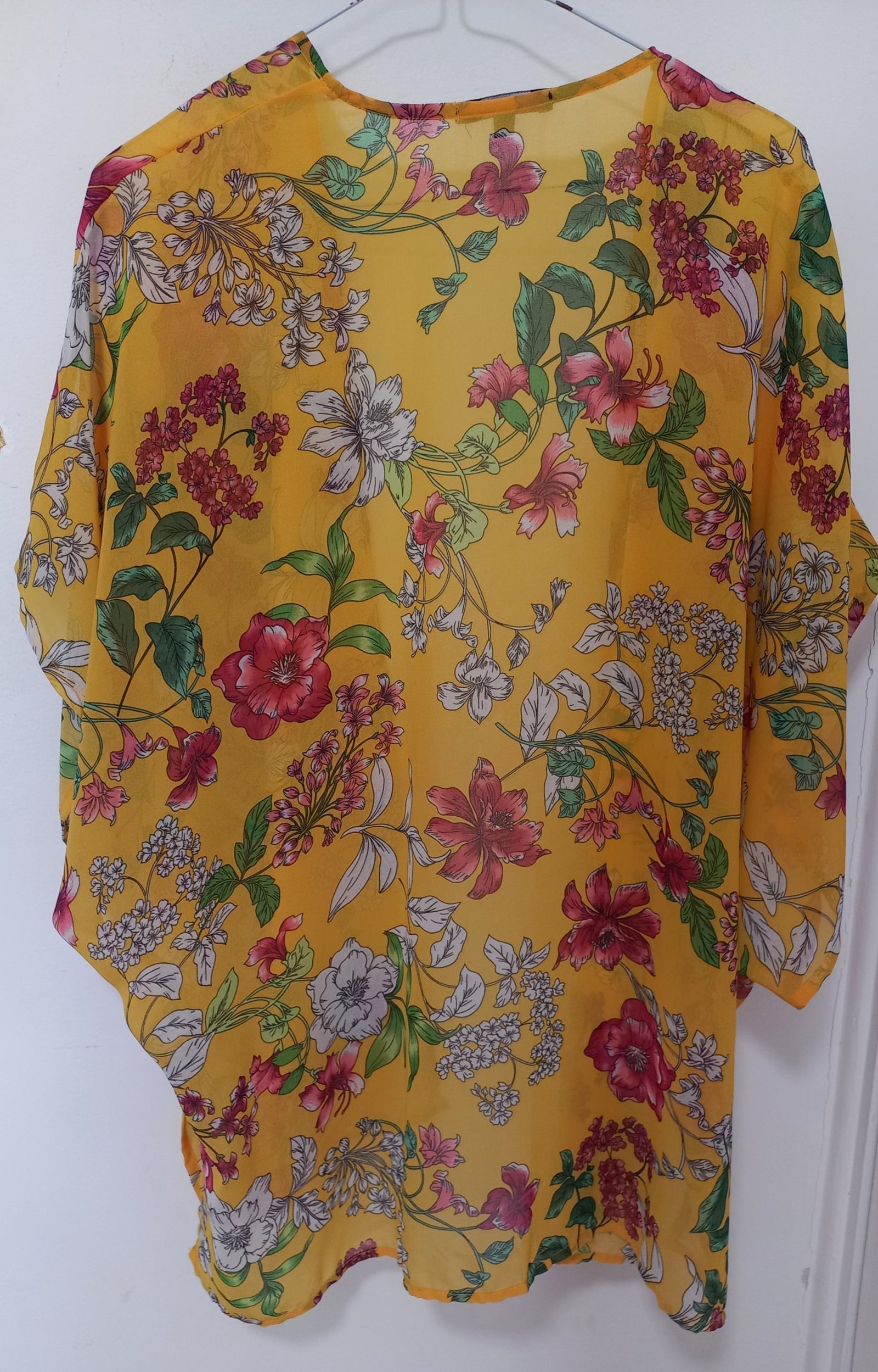 Kimono amarillo de la marca ambiance con estampado floral Tela delgada Corte cuadrado