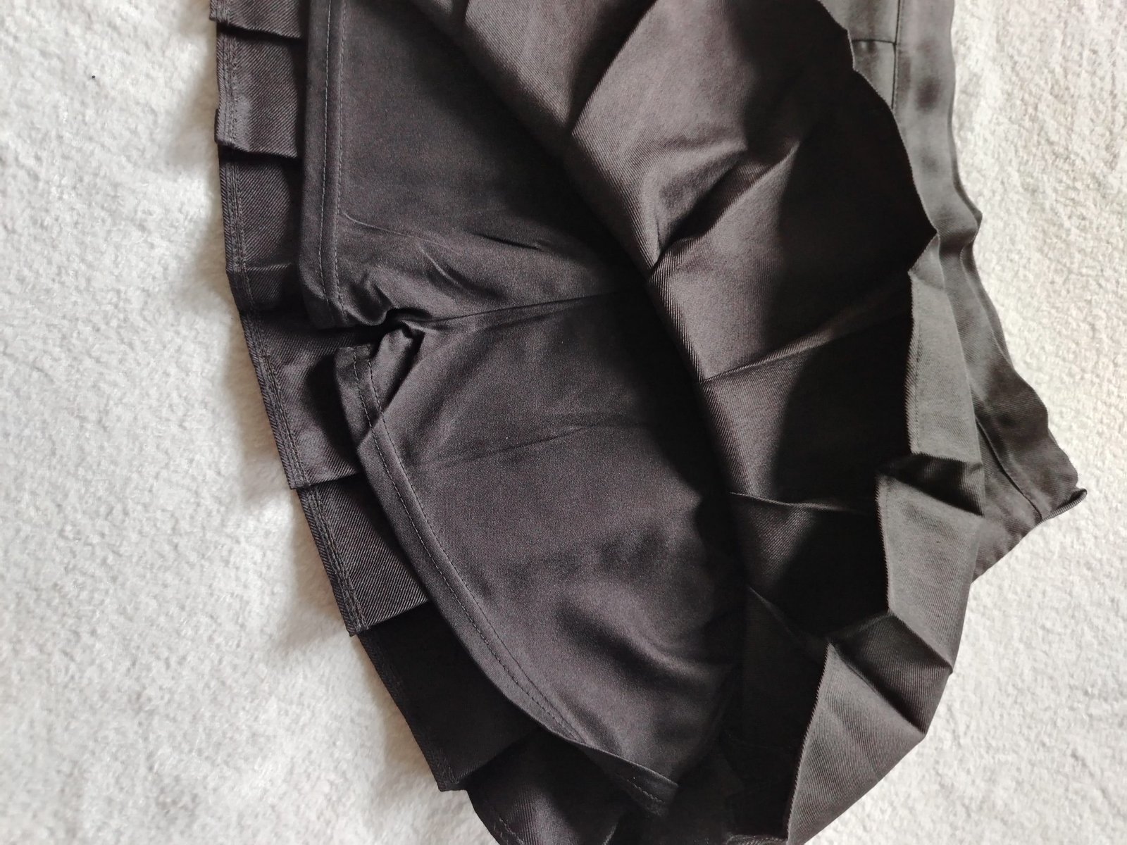 Divina Minifalda pantalón plisada en color negro, zipper a un costado. (Usada sólo una vez)