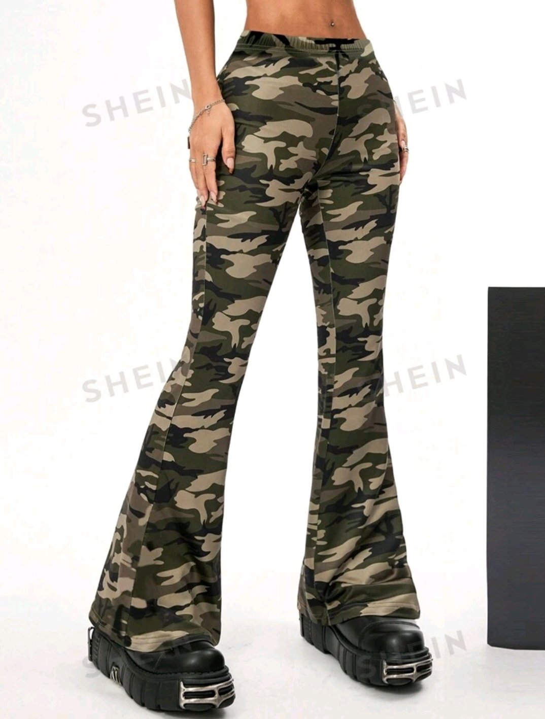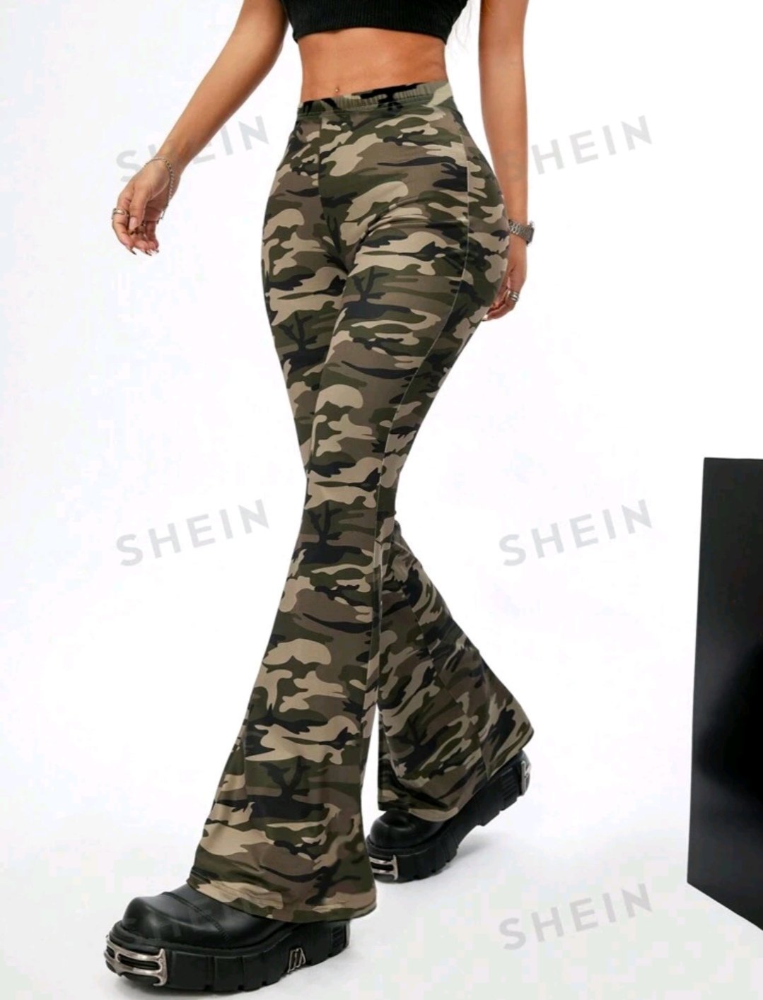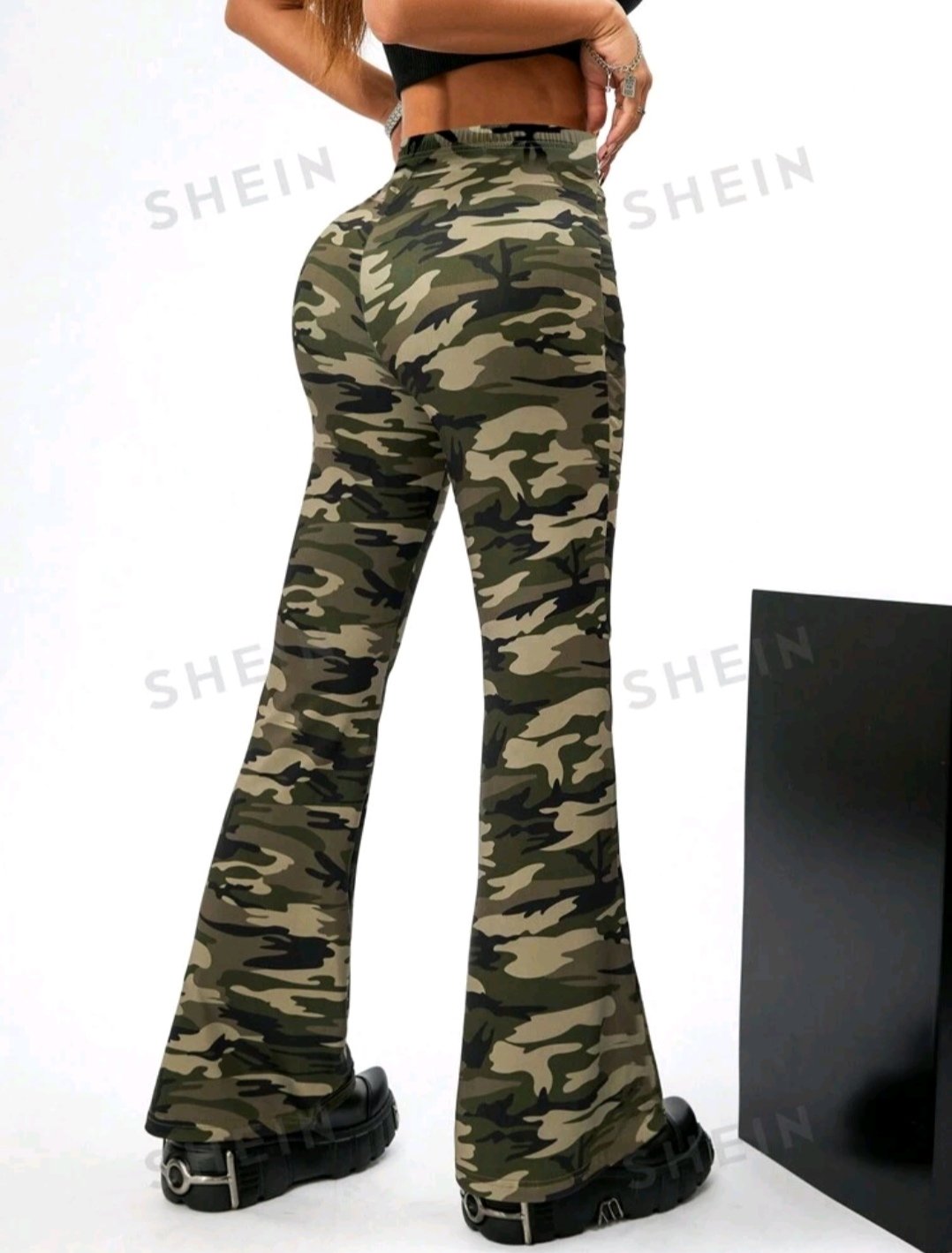 Pantalón de tela stretch con diseño de camuflaje, vasta ancha, talla L. Luce mucho mejor en alguien de estatura pequeña ya que la vasta se ve mejor. Sin ningún uso.