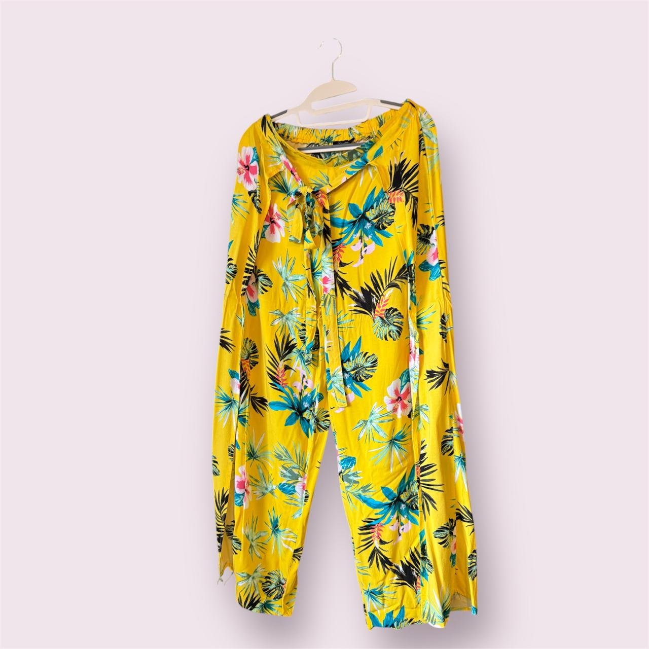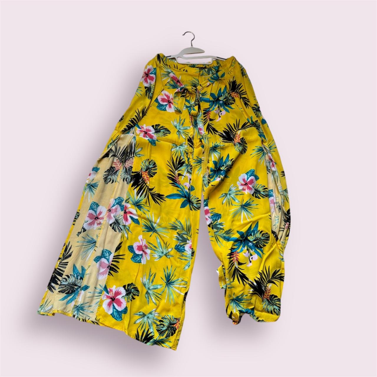 Pantalón de playa, Tama M, con aperturas a los lados y cinta para amarrar en la parte de adelante.