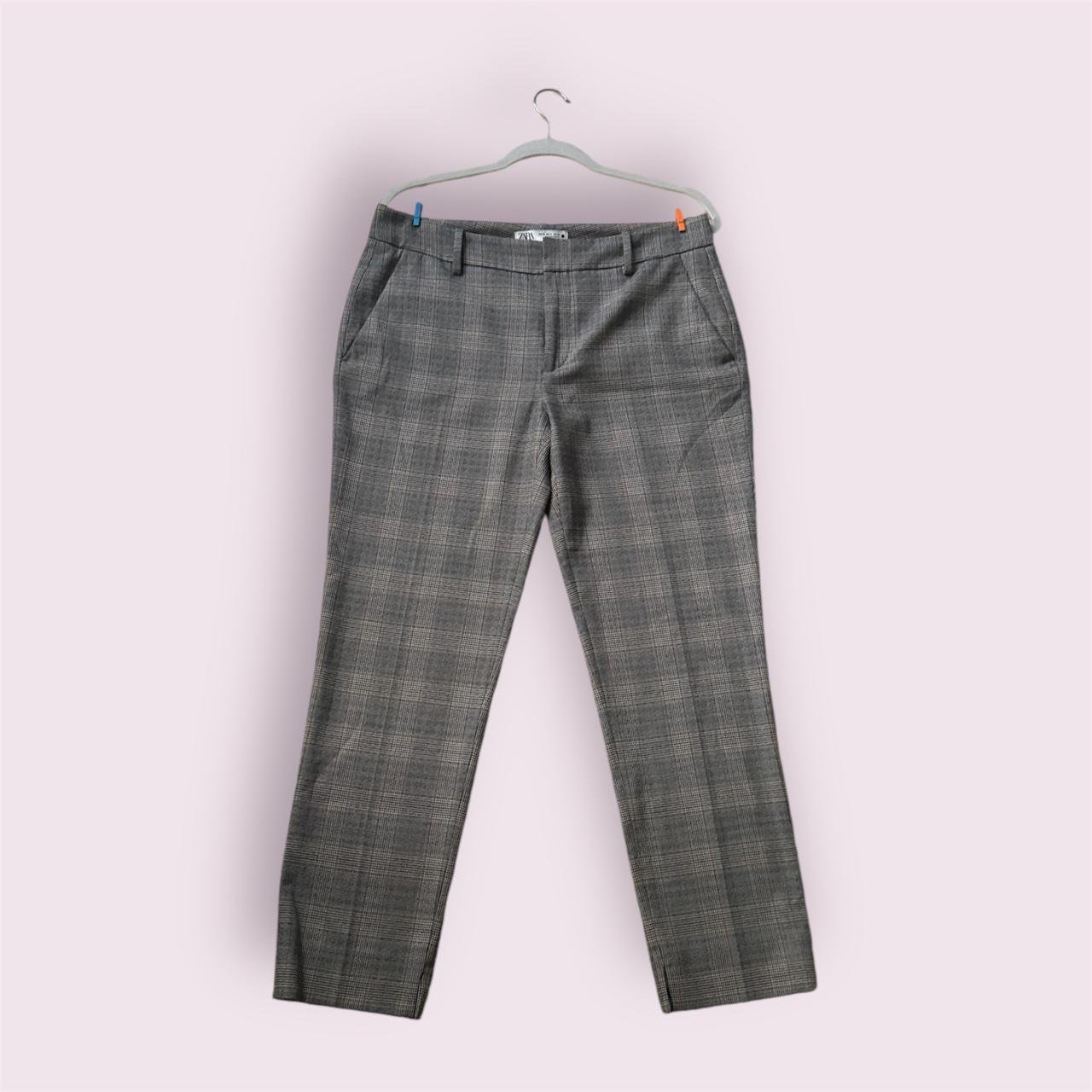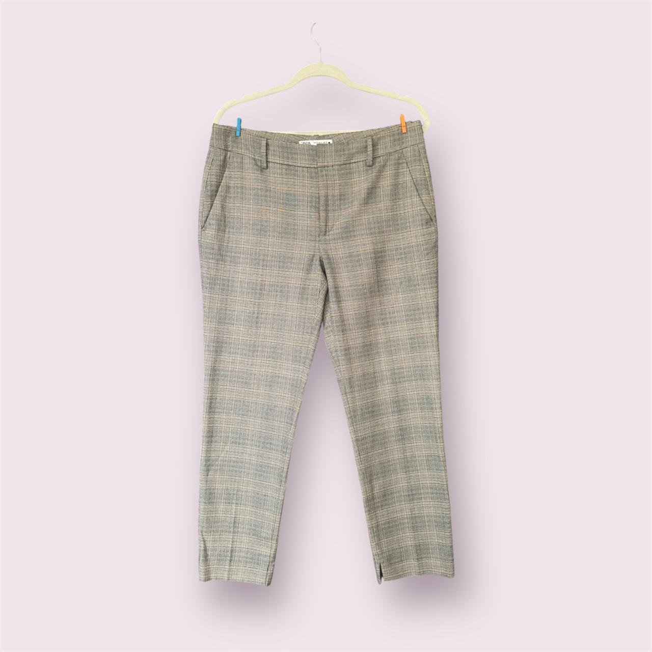 Pantalón ZARA, talla M, crema con rayas.