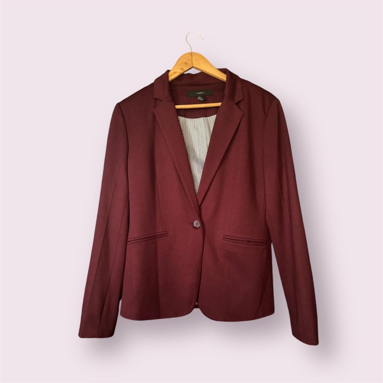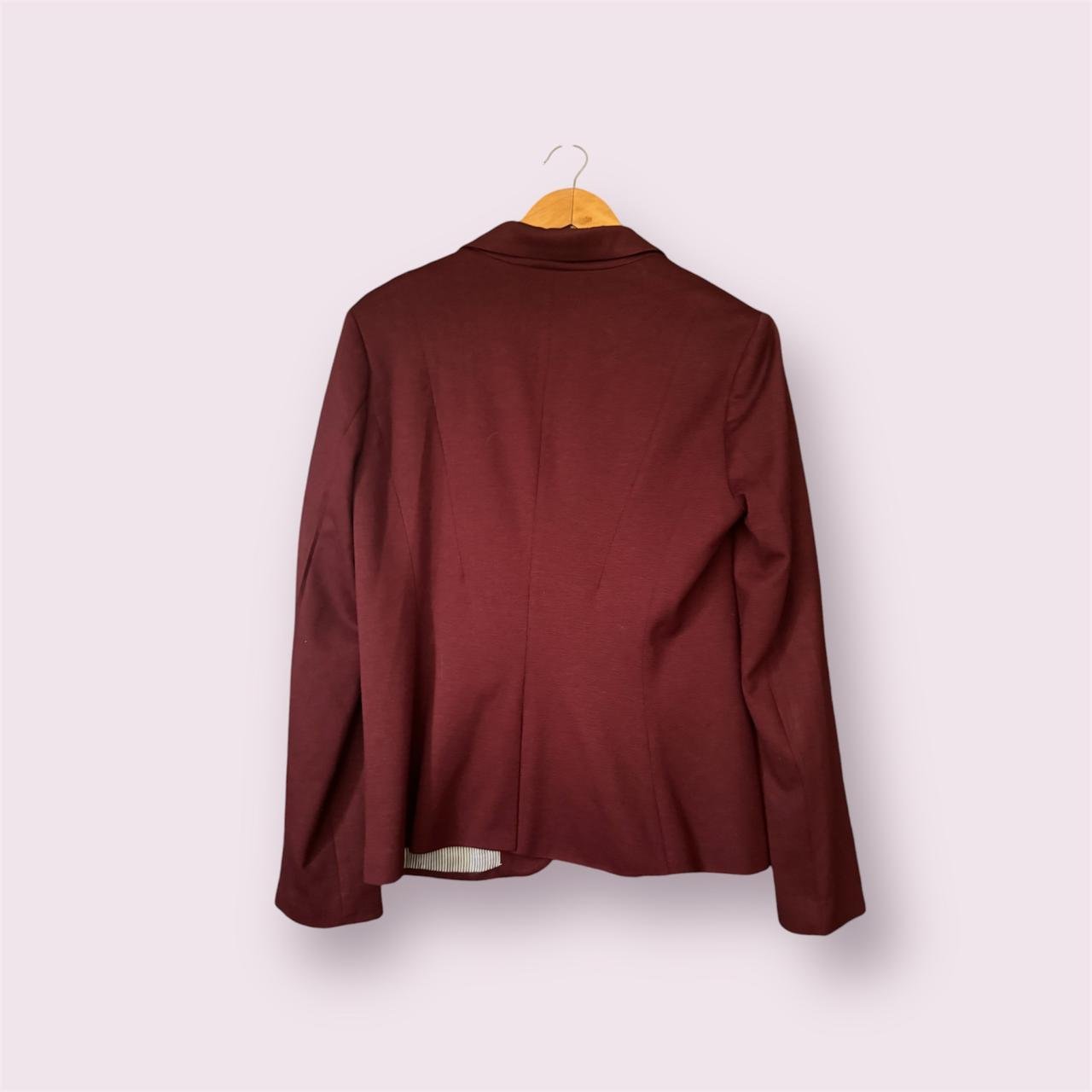 Saco rojo vino forrado por dentro con tela de rayas azules. Talla L