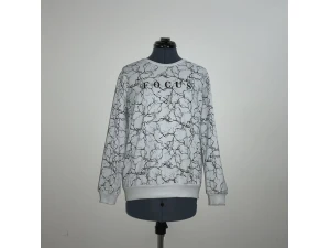 Sudadera color vino, marca H&M. Con cuello redondo (amplio), mangas largas y estampado de estrellas (negras). Tela: 100% algodón. Talla XS (corre grande).