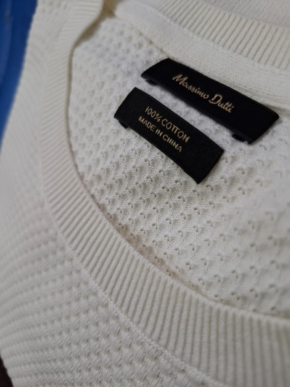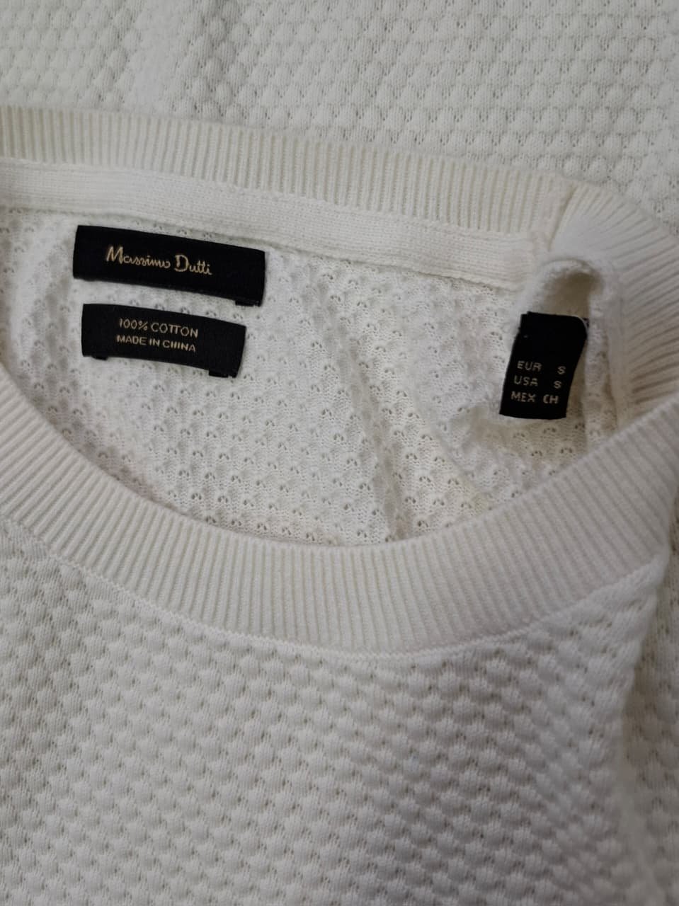 Suéter de caballero Massimo Dutti, color blanco hueso, 100% algodón.Talla S, en excelente estado (poco uso).Cómodo, versátil y fácil de combinar. Moda de marca a precio accesible.