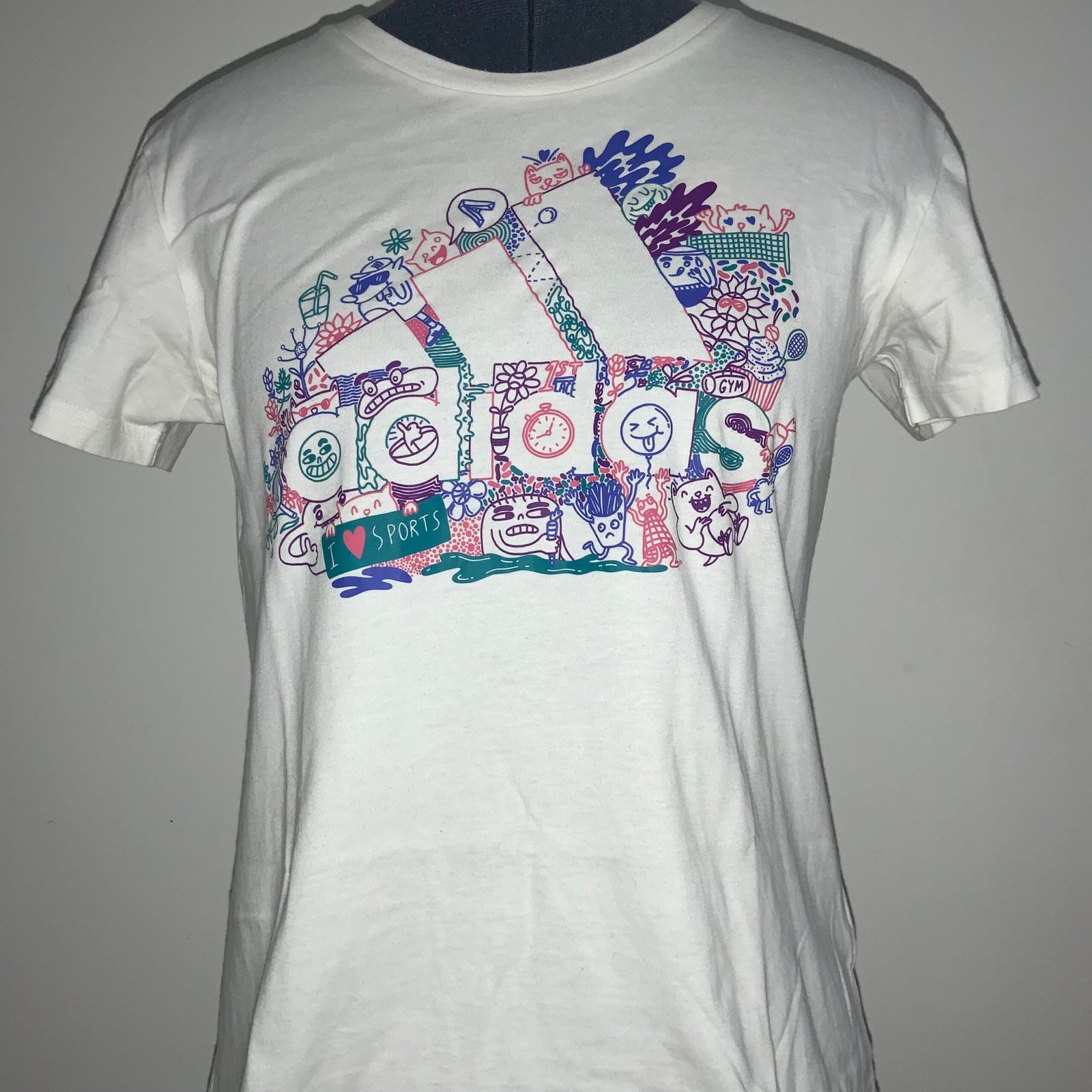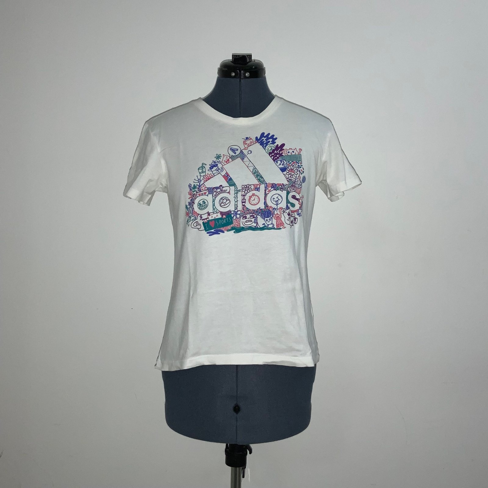 T-shirt con estampado sport, marca Adidas. Con cuello redondo y mangas cortas. Tela: 100% algodón.