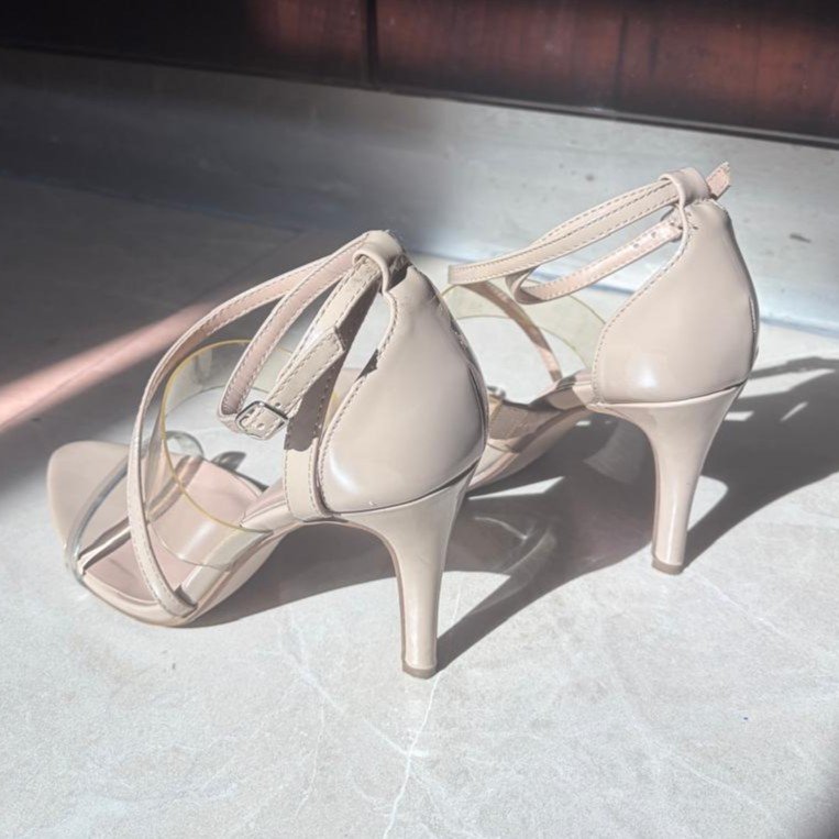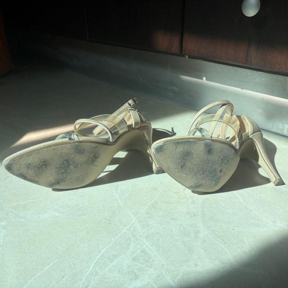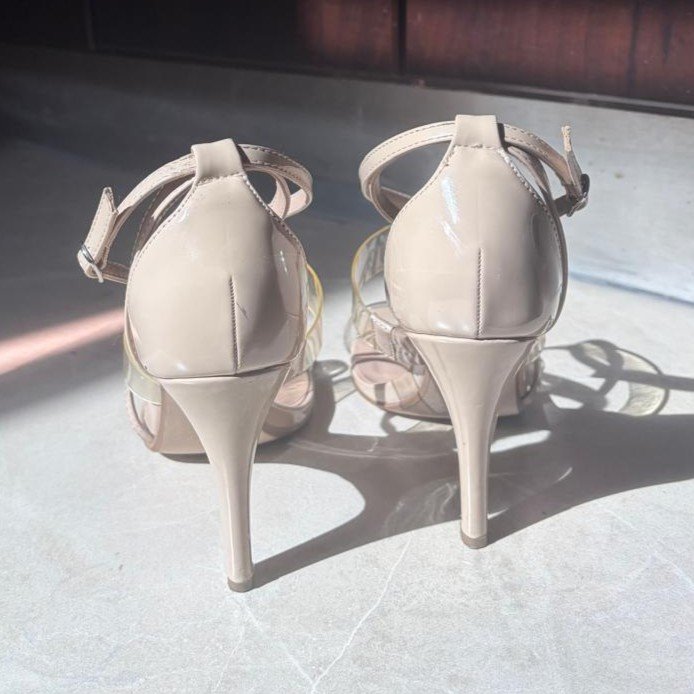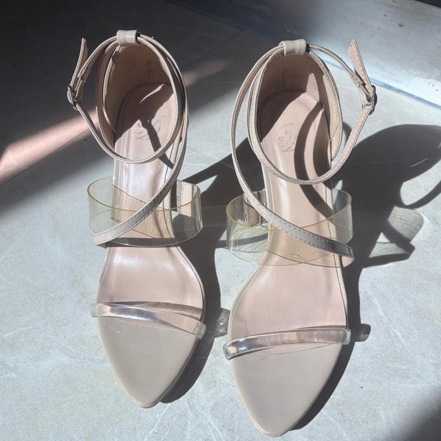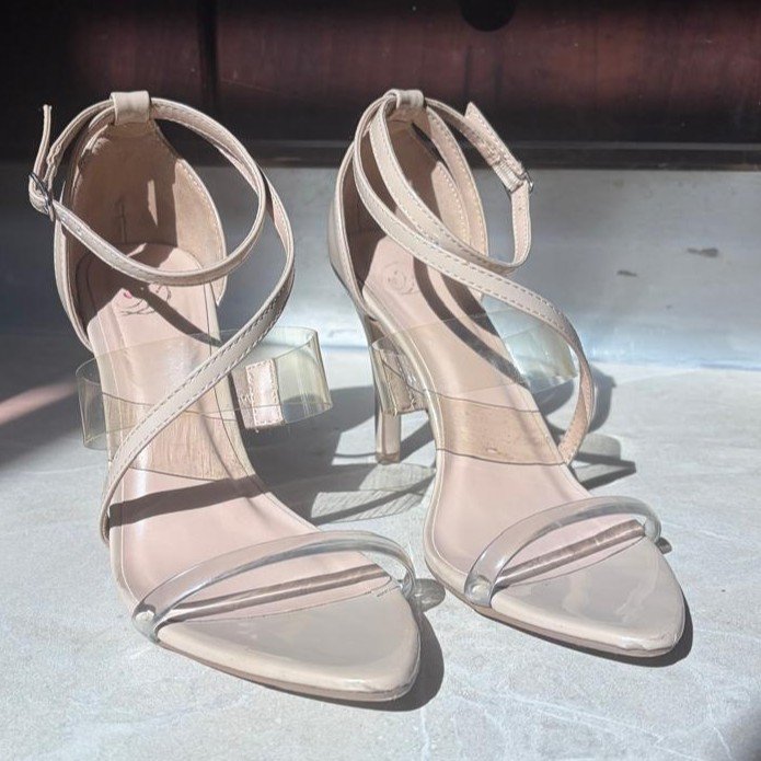 Tacones beige con tiras transparentes cantidad