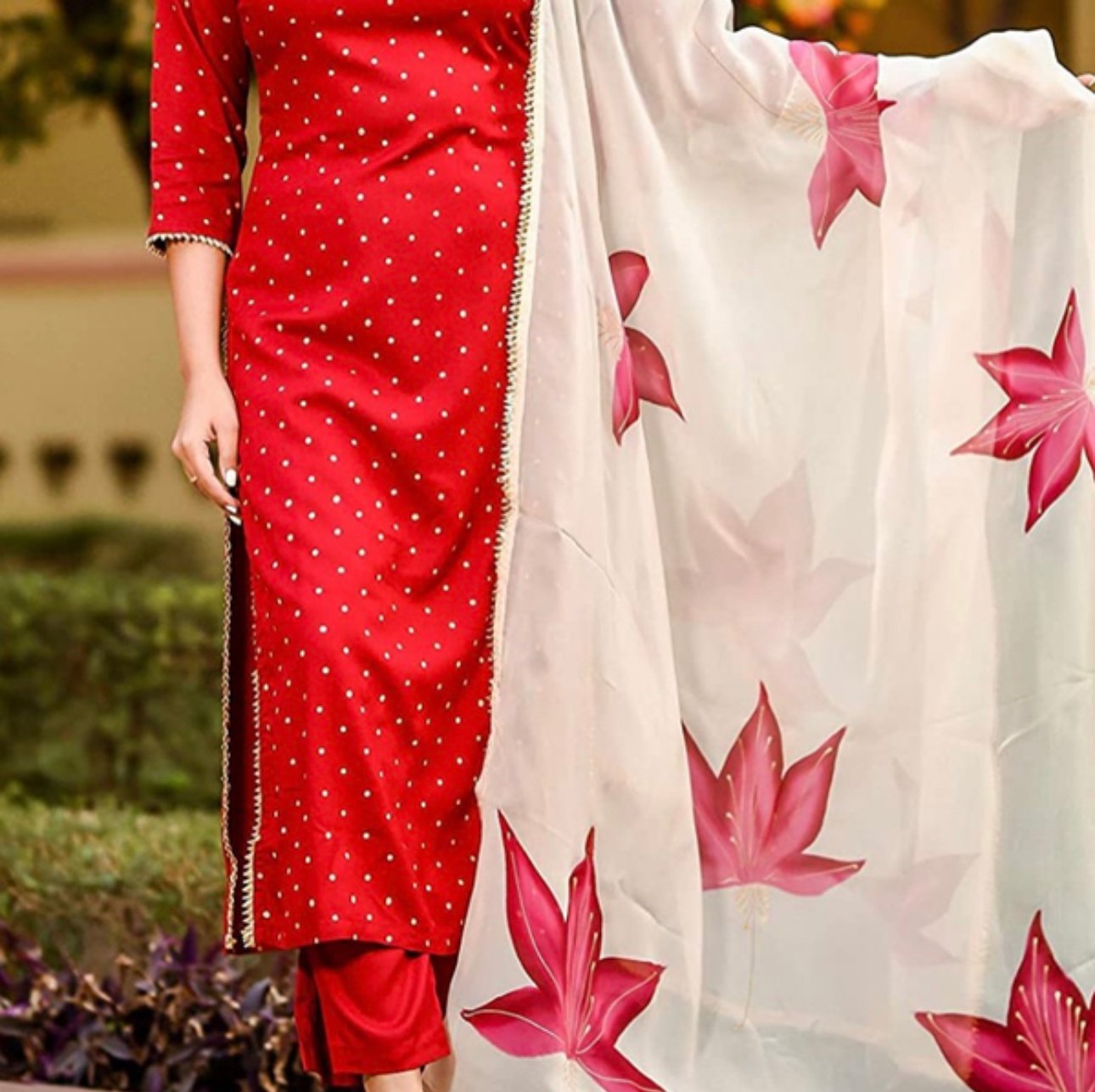 Talla M – Rojo SET KURTA, PANTALON Y DUPATTA