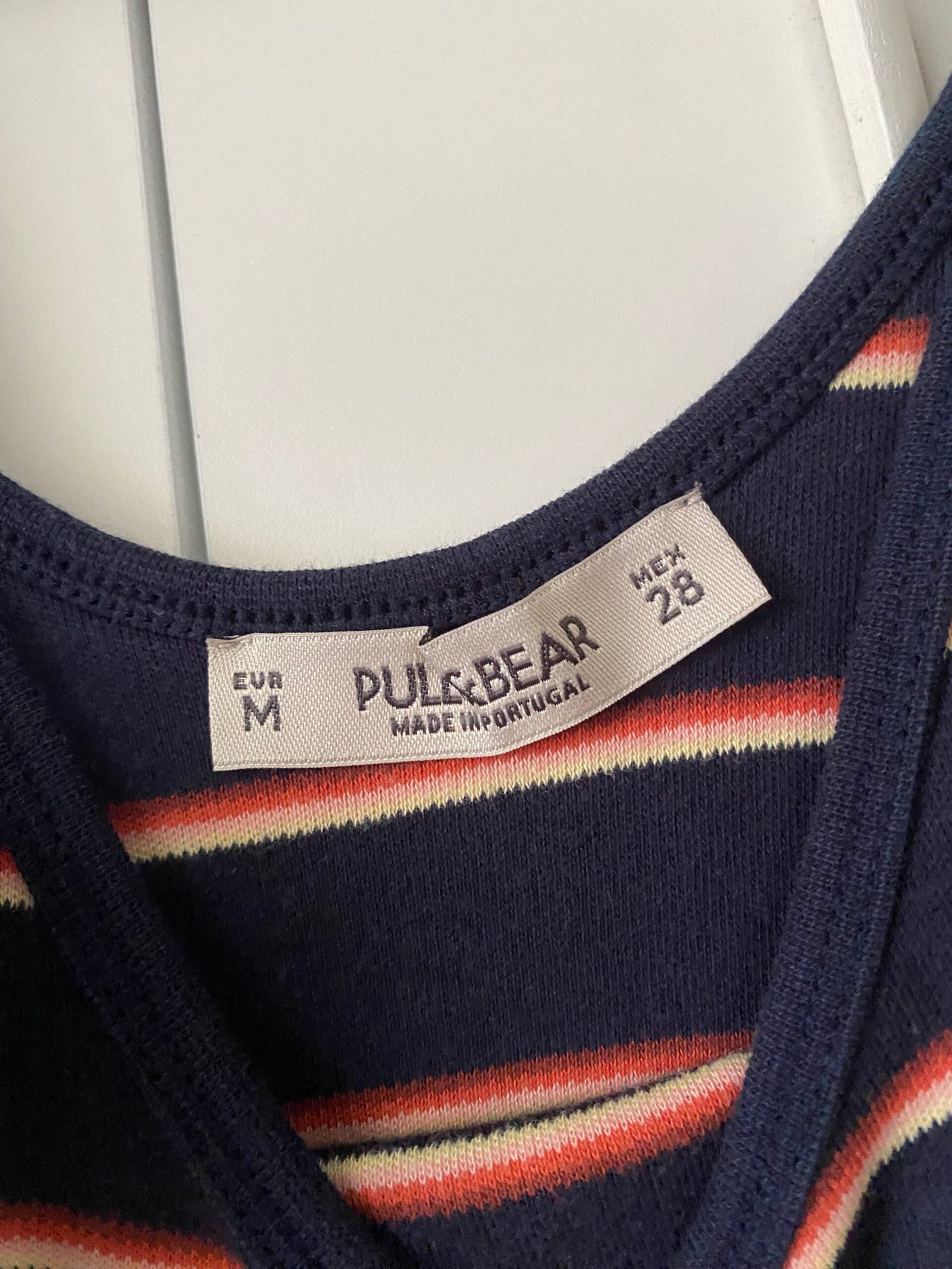 Tank top azul con rayas, marca Pull & Bear