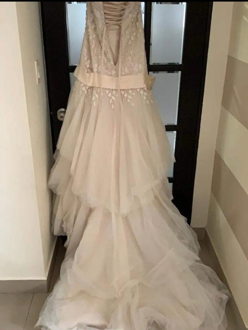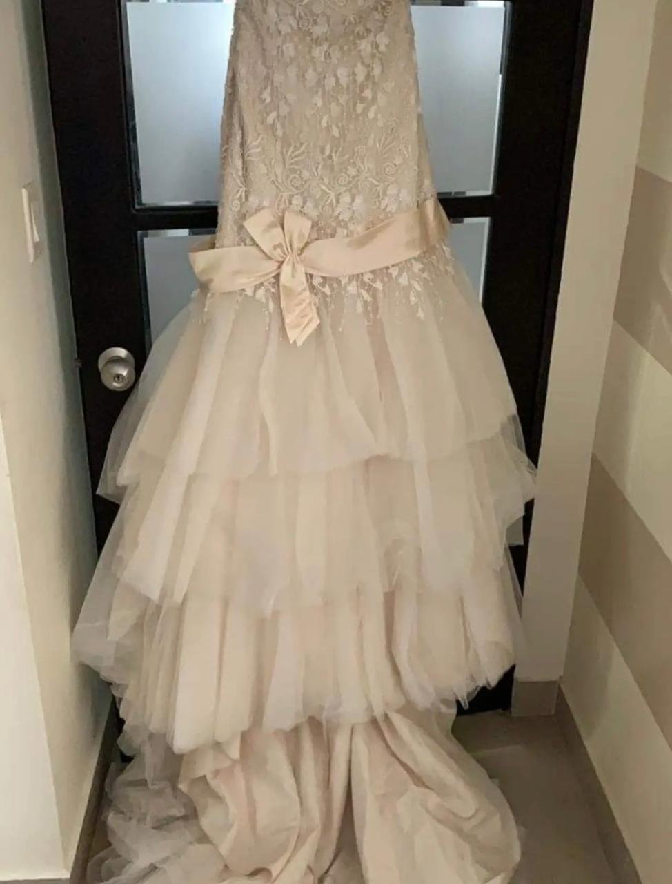 Traje de Novia Marca Maggie Sottero Talla 12. Es color beige