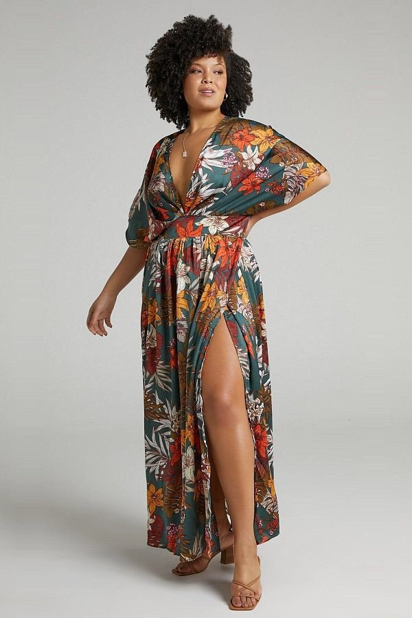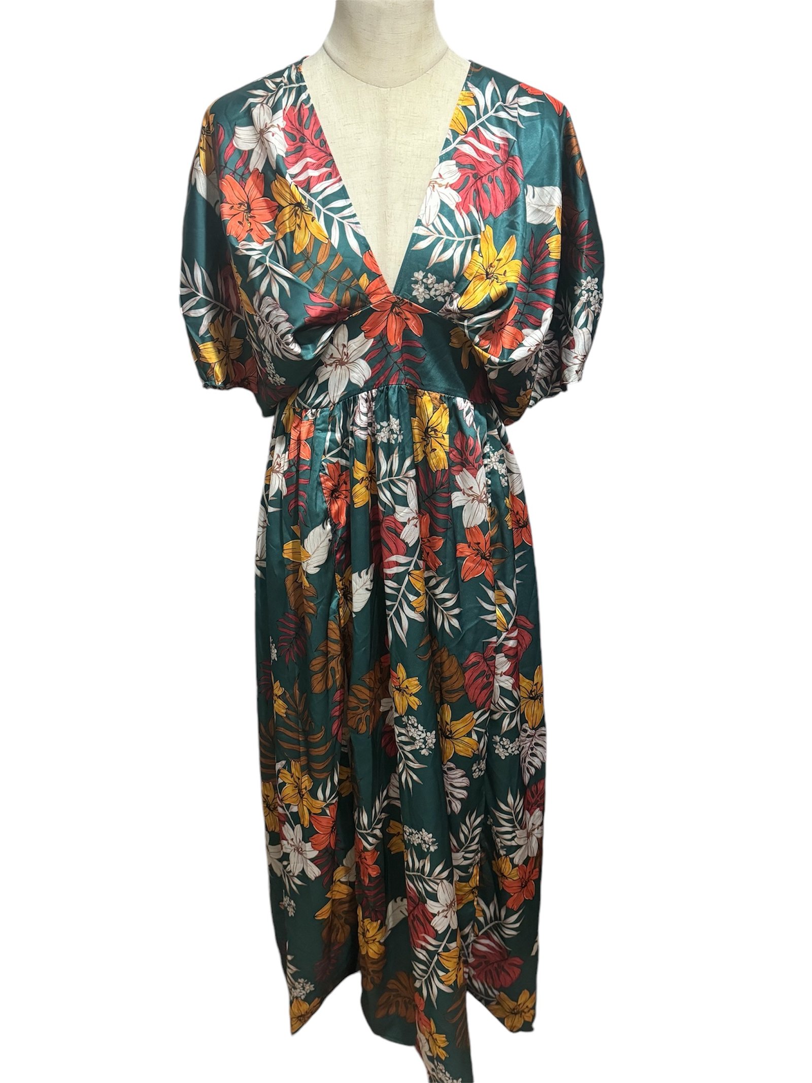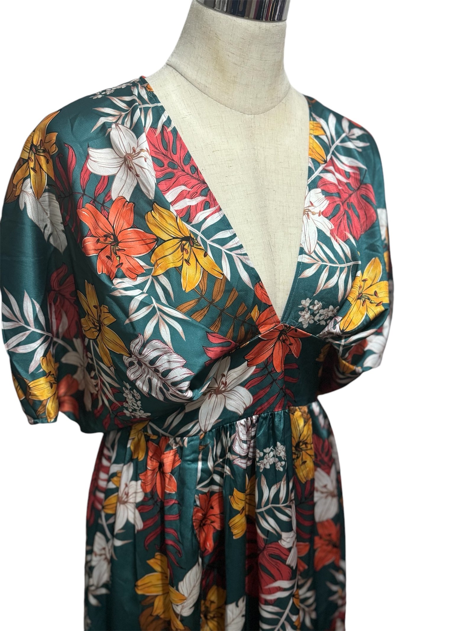 Maxi dress floreado en tonos verde y rosa - 1 solo uso
