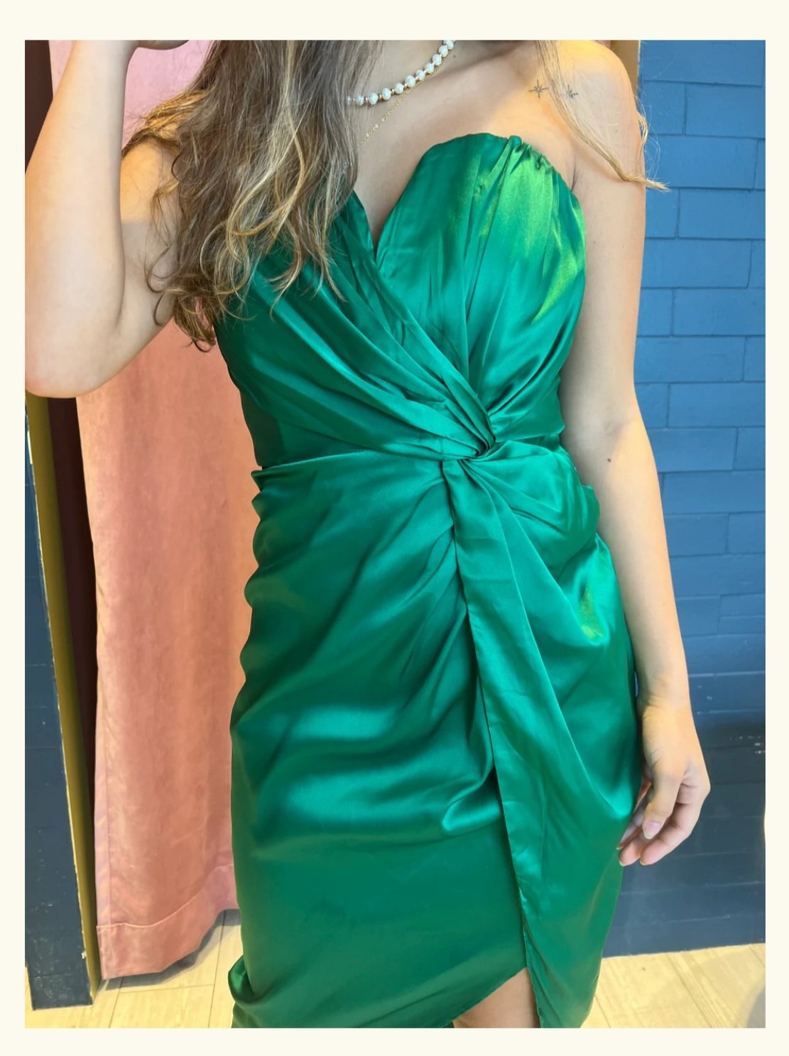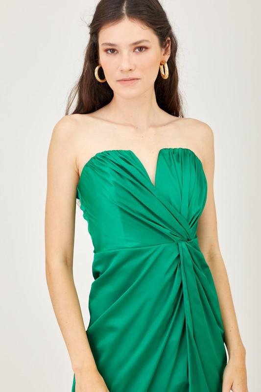 Vestido escotado con apertura en pierna izquierda y cierre de zipper en espalda Verde Esmeralda