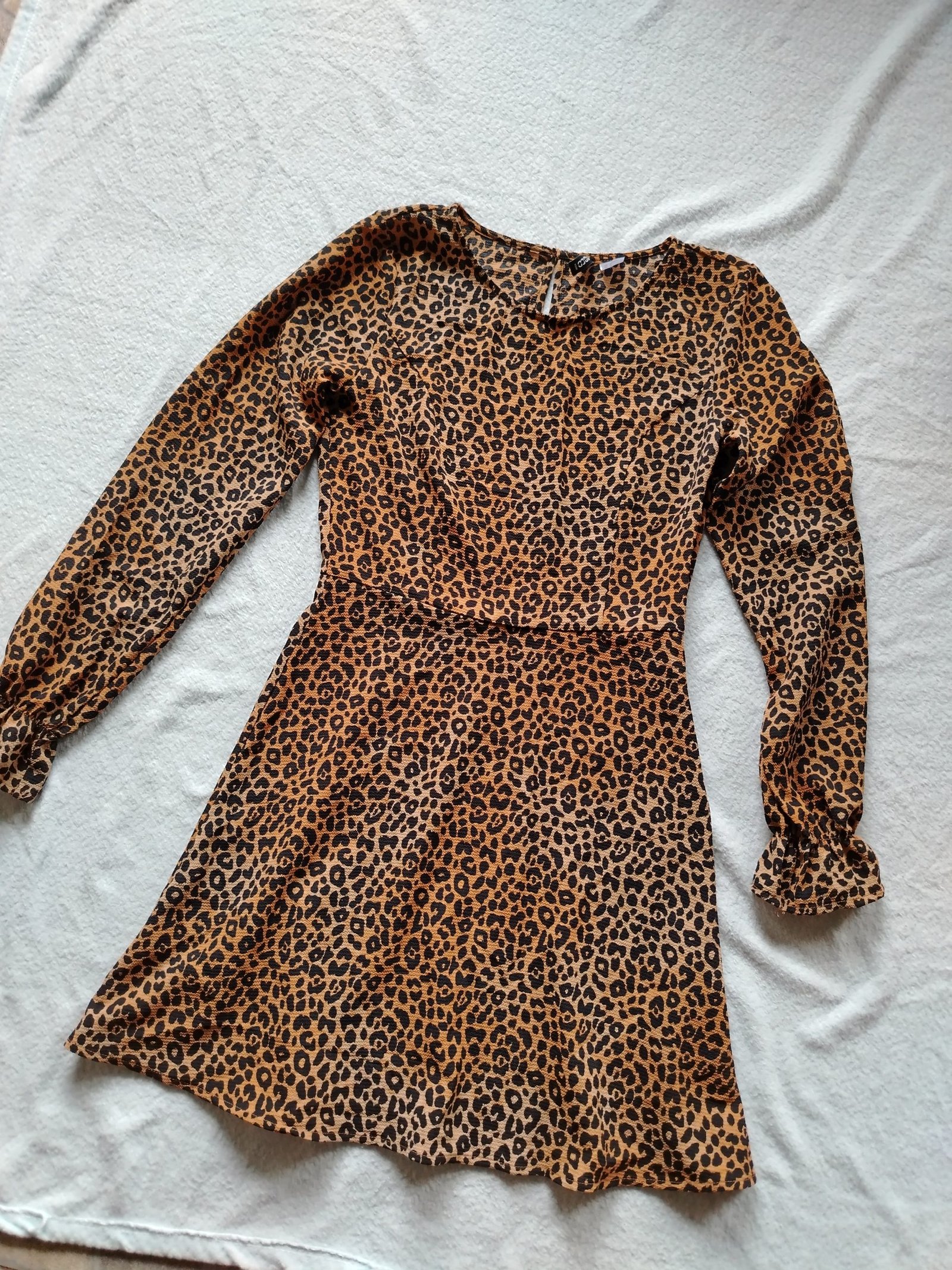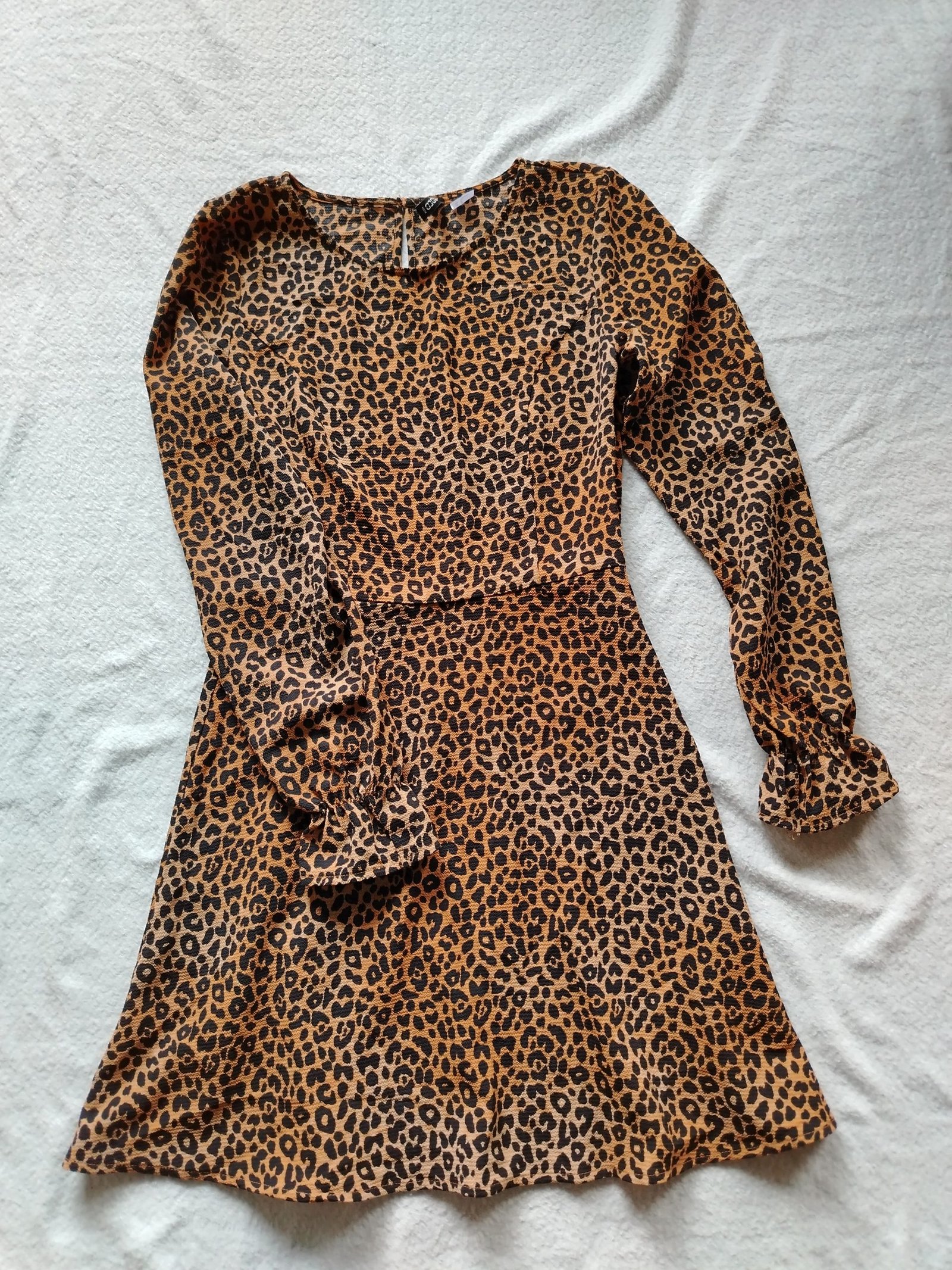Coqueto Mini vestido Animal Print, tela suave y acampanada (usado una sola vez).