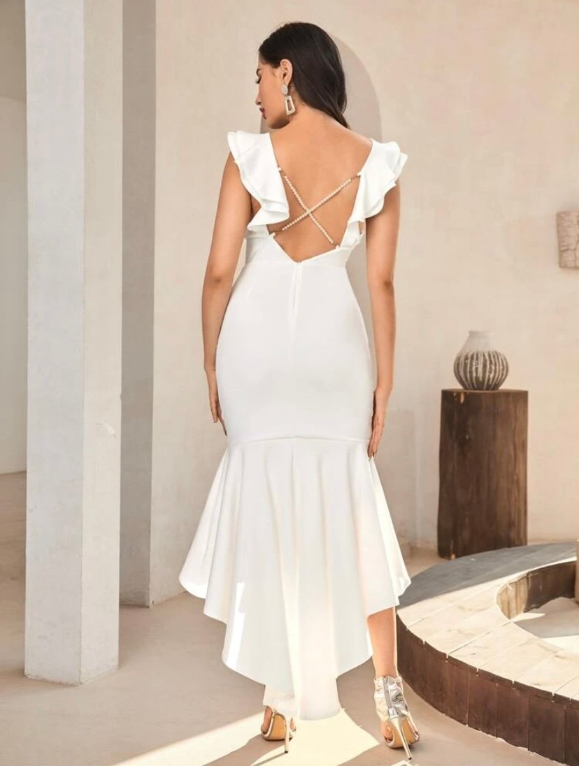 Vestido blanco con corte de sirena ajustado al cuerpo. Nueva y en perfecto estado.