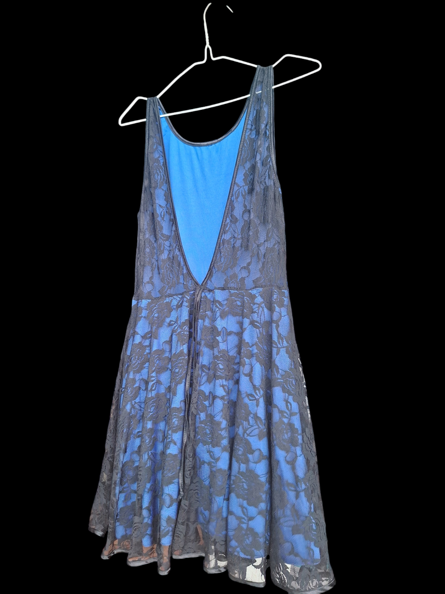 Vestido corto estilo cóctel de noche con espalda descubierta en el área de los senos; no tiene almohadillas ni rellenos. Talla M