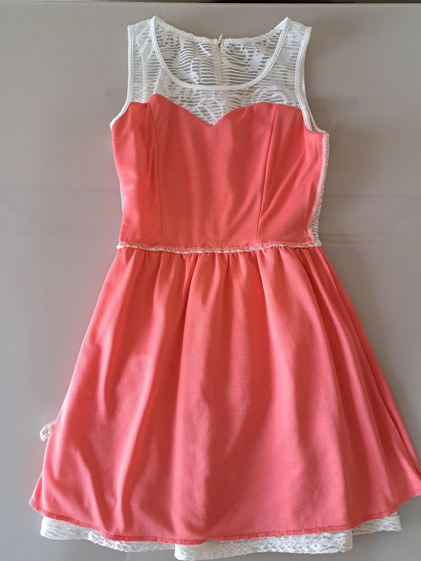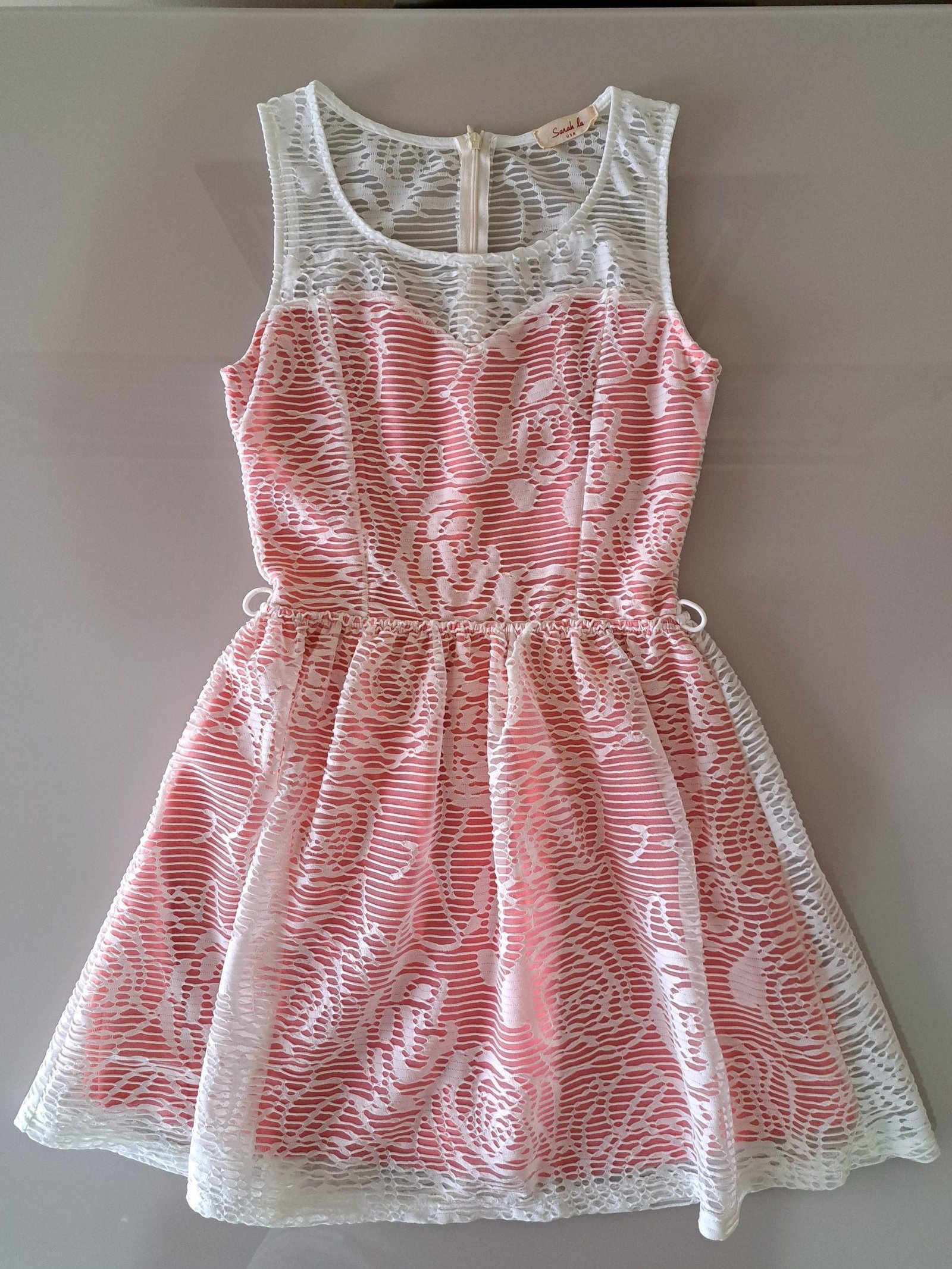 Vestido corto casual, color blanco y rosado. Corre pequeño. Puede colocarle correa en cintura a su gusto.