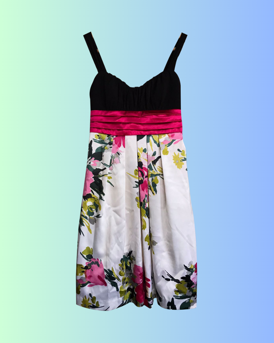 Vestido corto con estampado de flores. Material: 95% Polyester, 5% spandex.