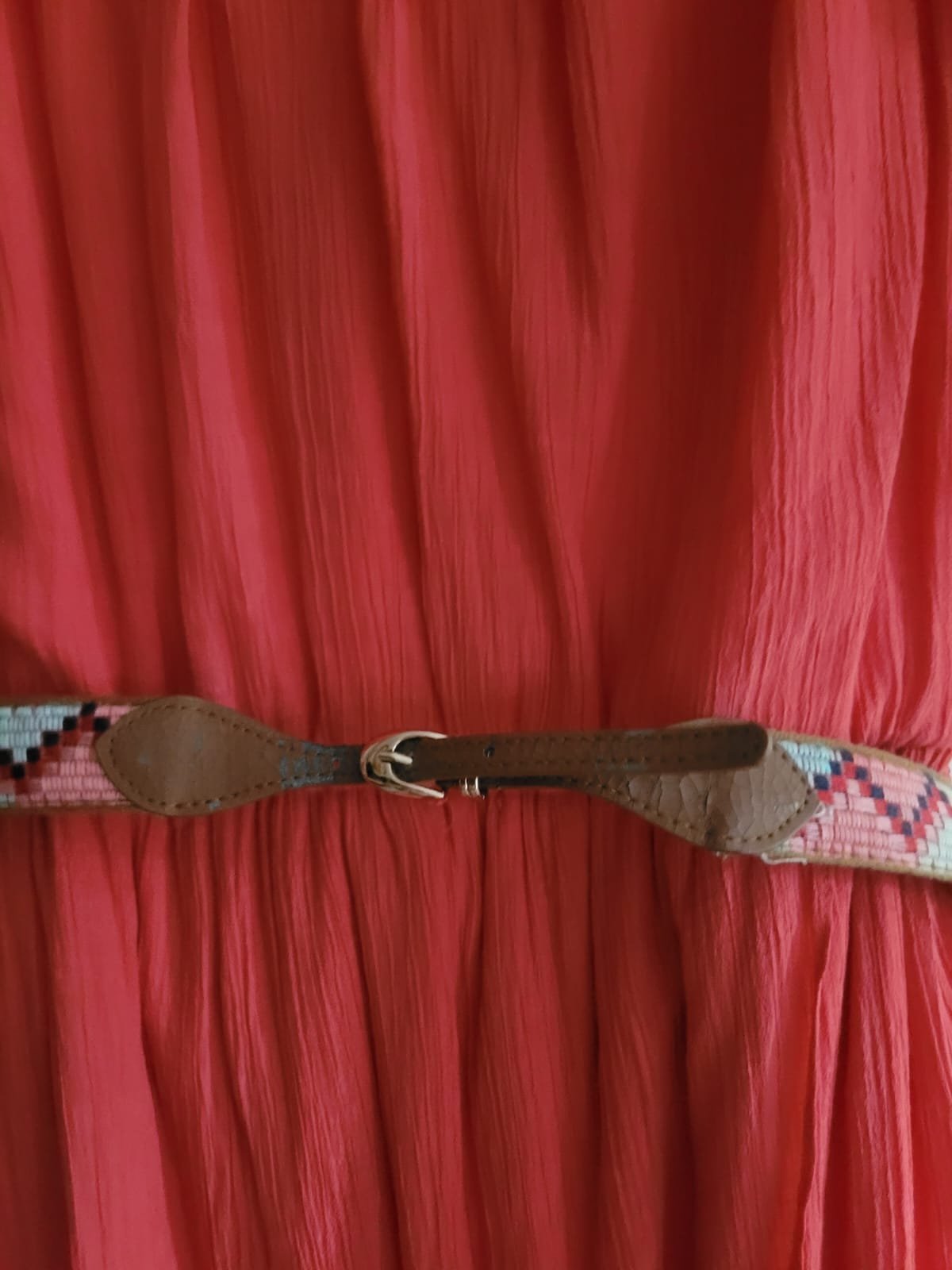 - El vestido esta en buenas condiciones, la correa lleva algo de desgaste.