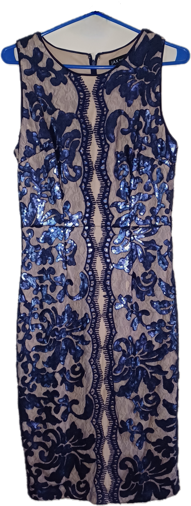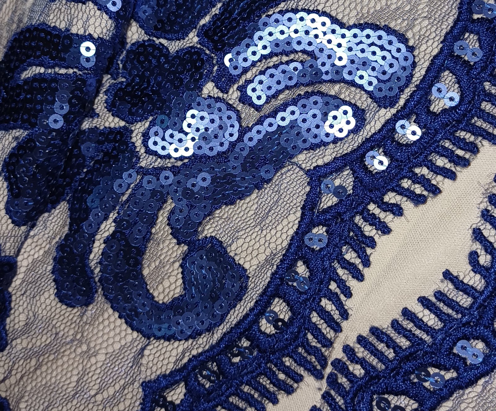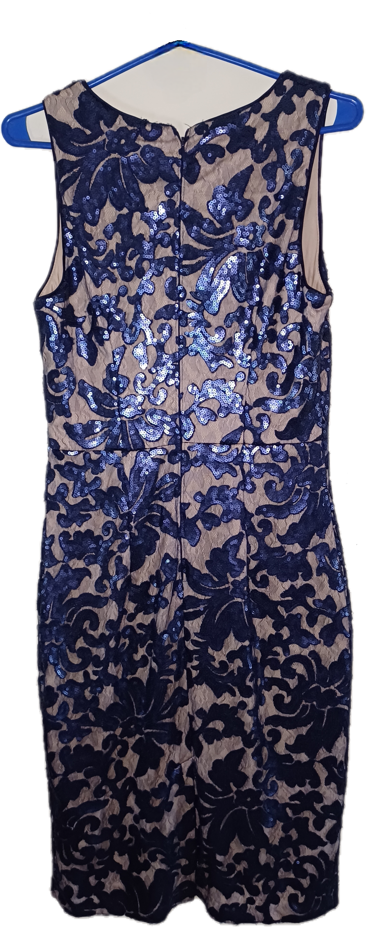 Vestido crema con estampado azul de lentejuelas