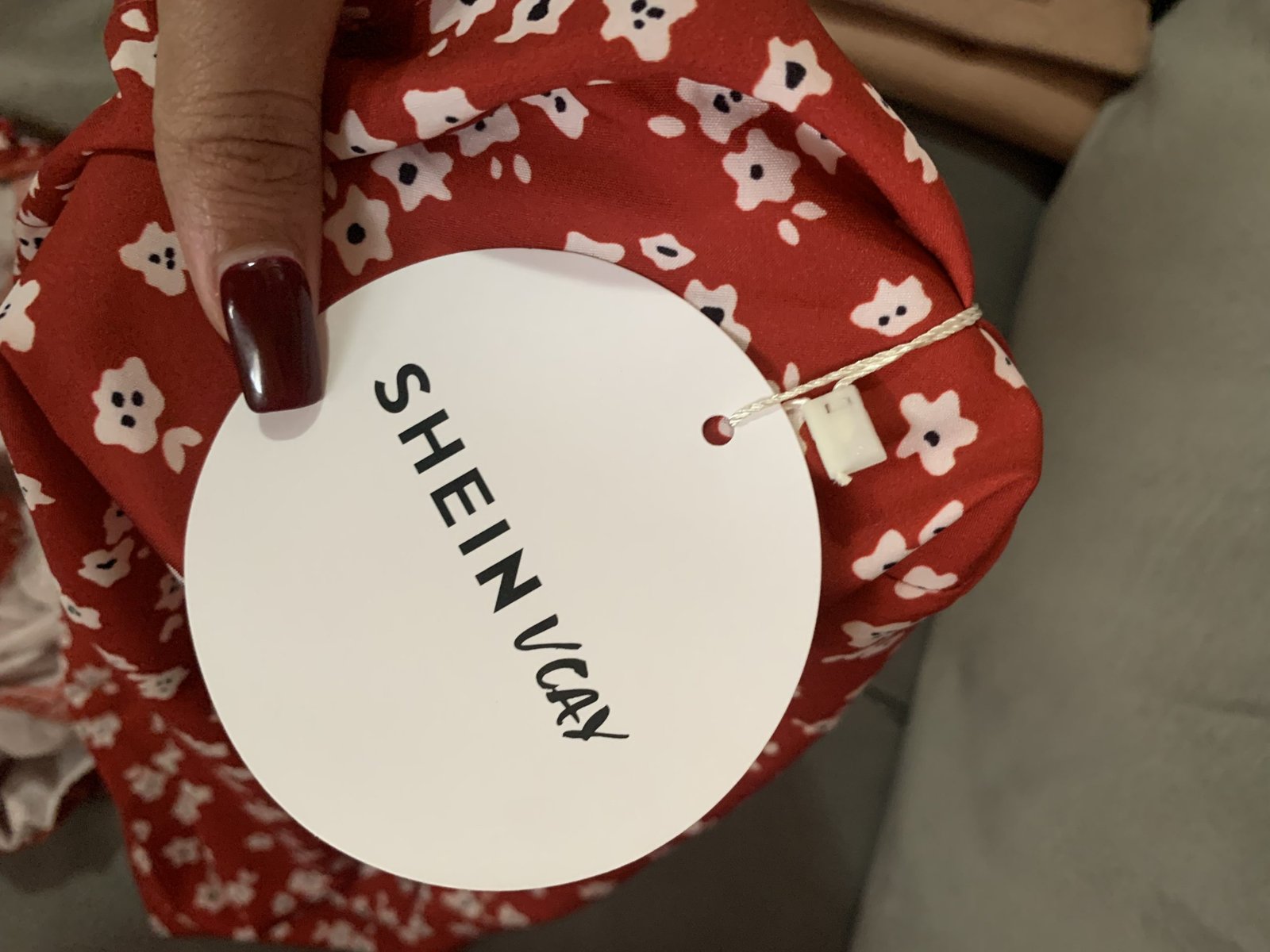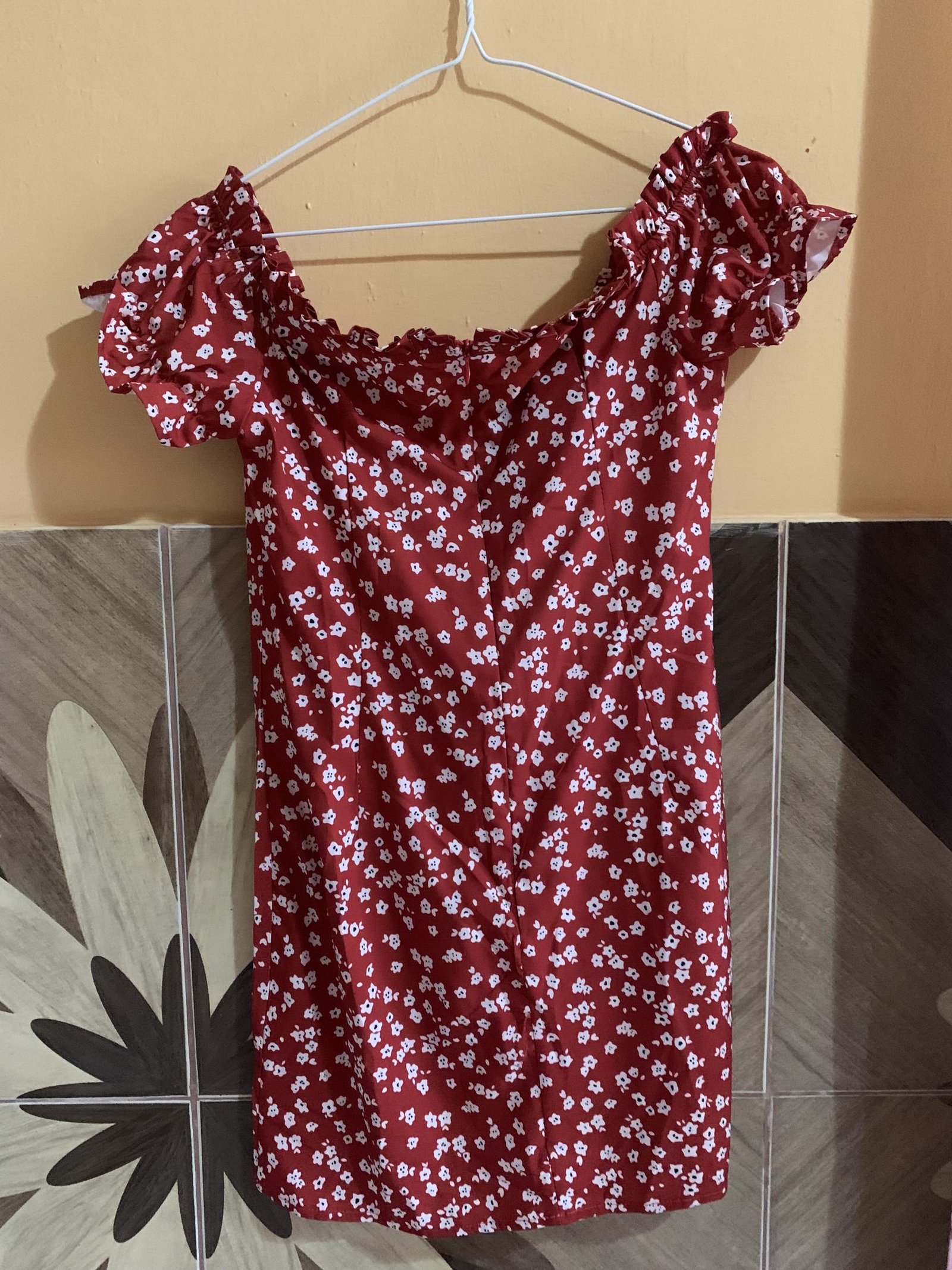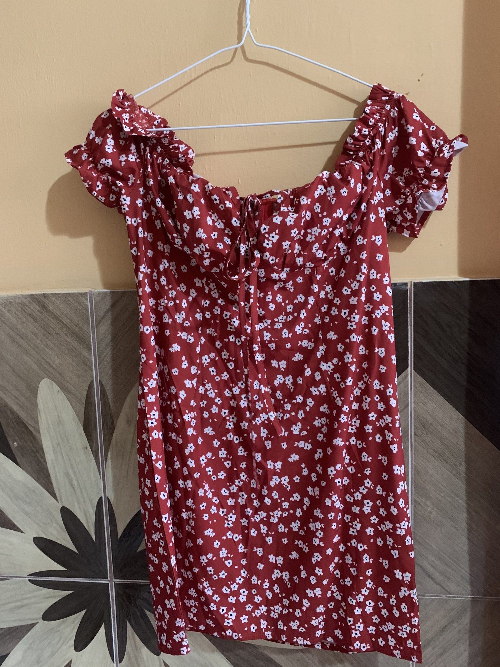 Vestido corto rojo con estampado de flores blancas, nuevo, en perfecto estado y sin usar.