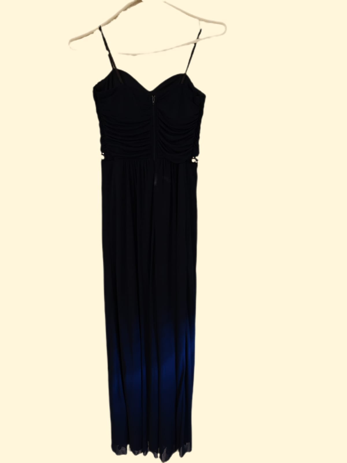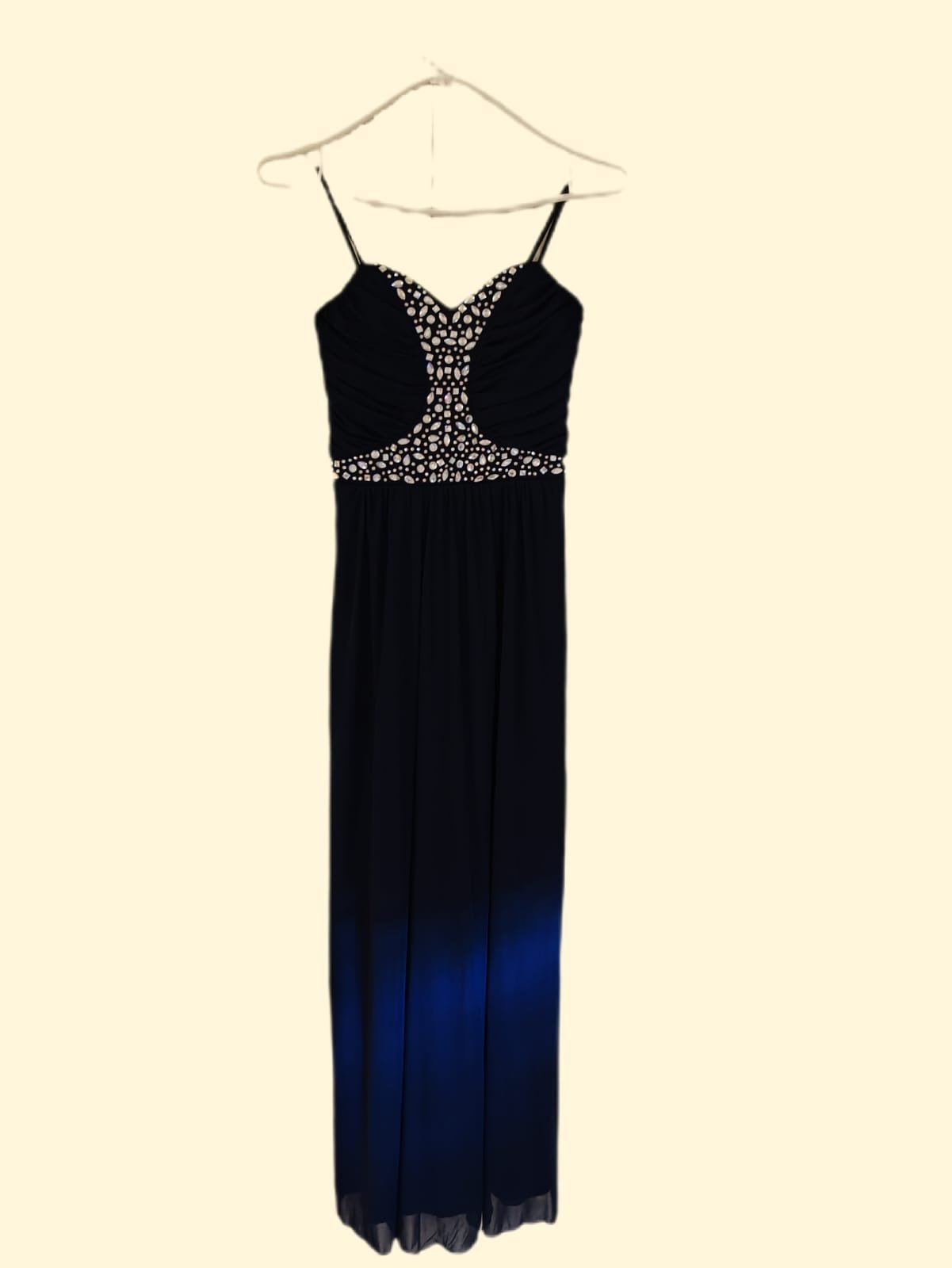 Vestido Azul profundo largo con pedrería plateadas. Ideal para bodas, quinceaños, eventos familiares formales