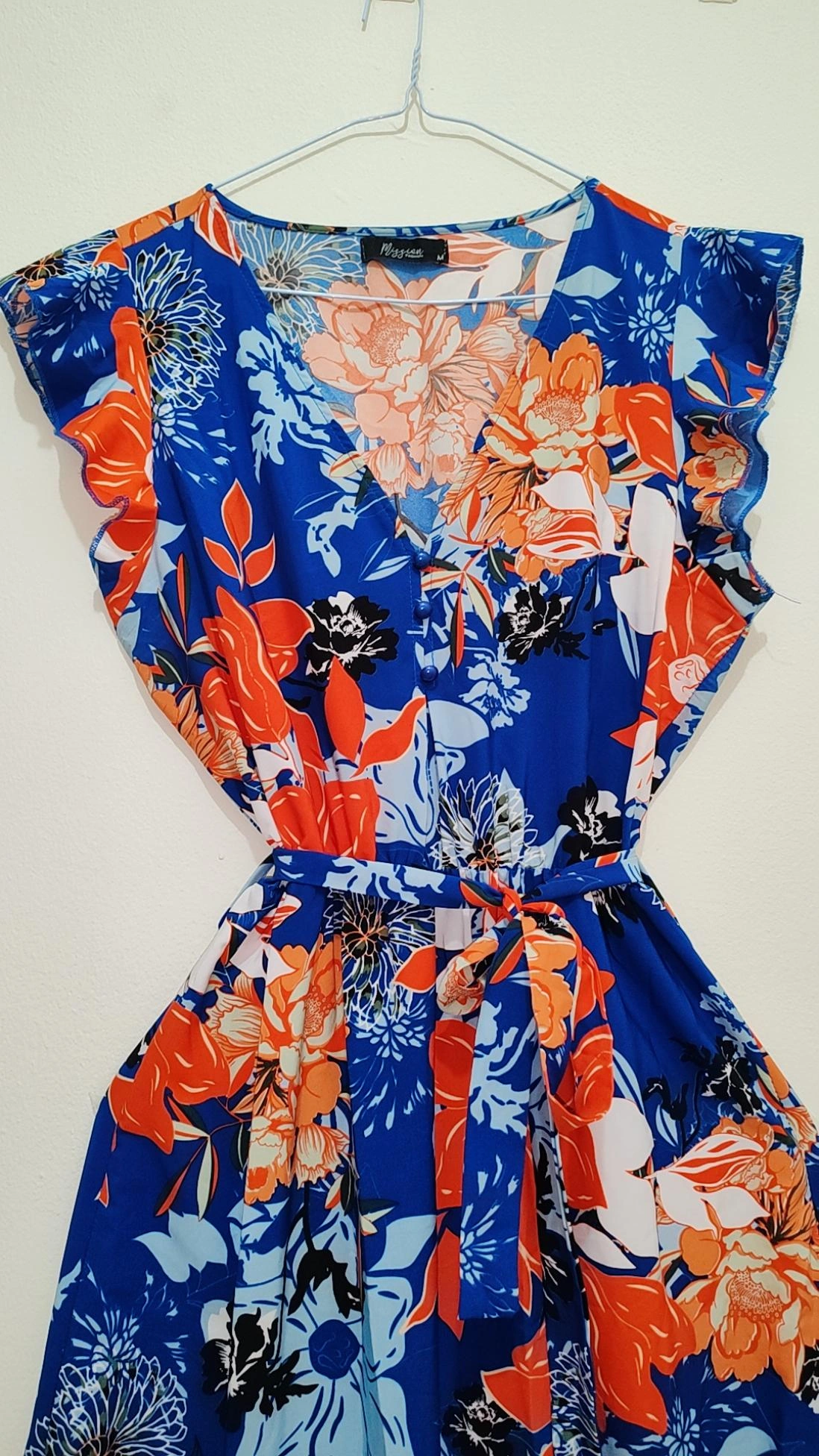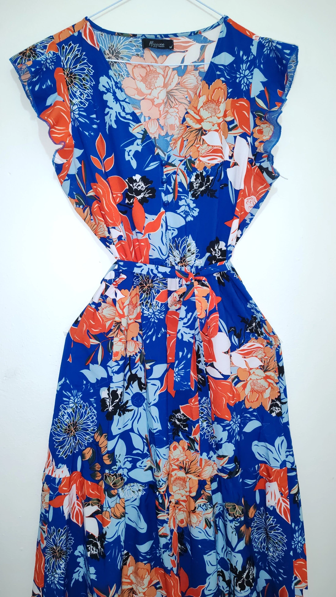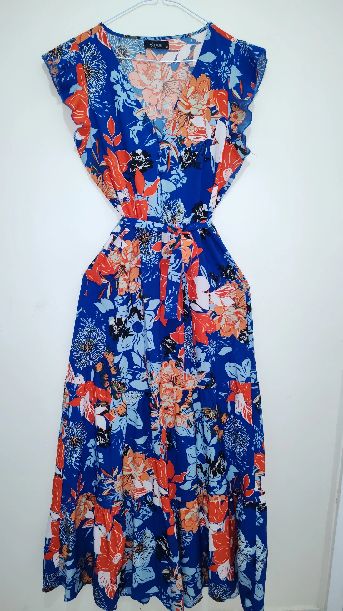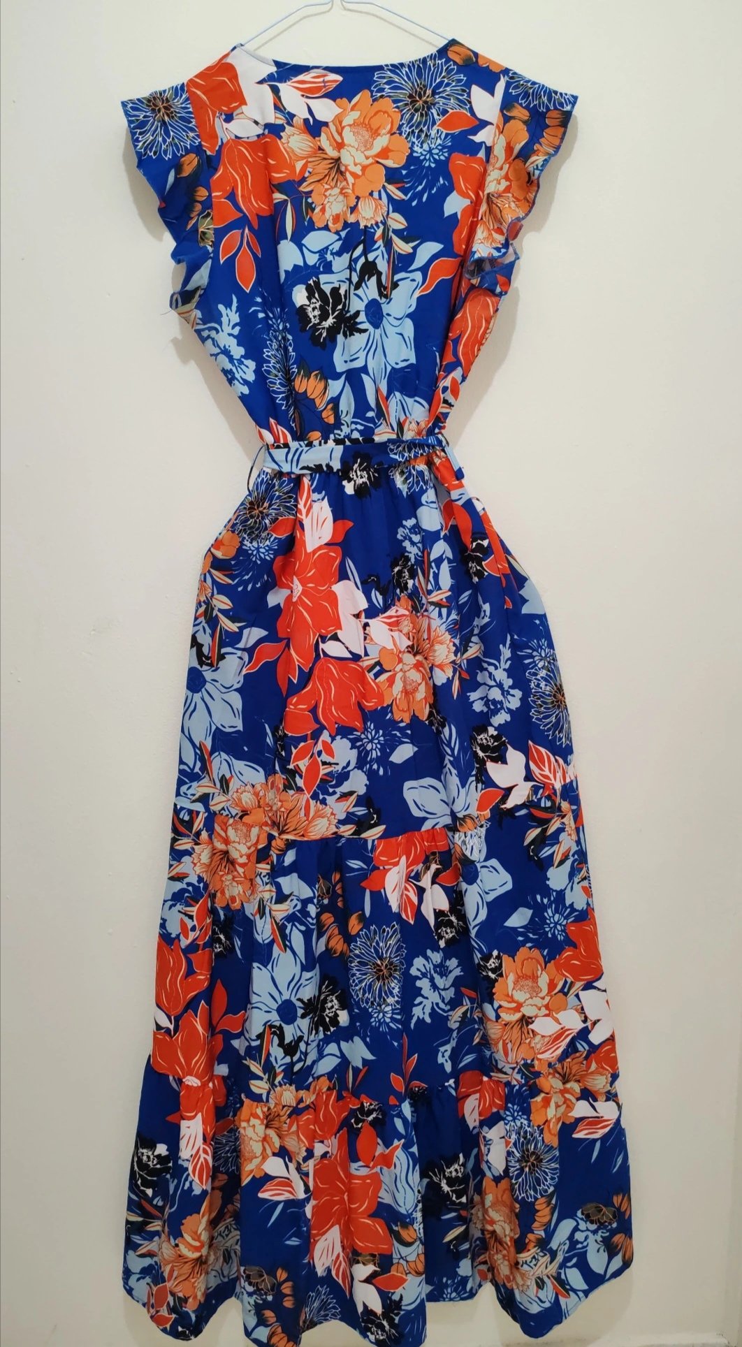 Vestido largo floreado azul y naranja- Maxi Dress