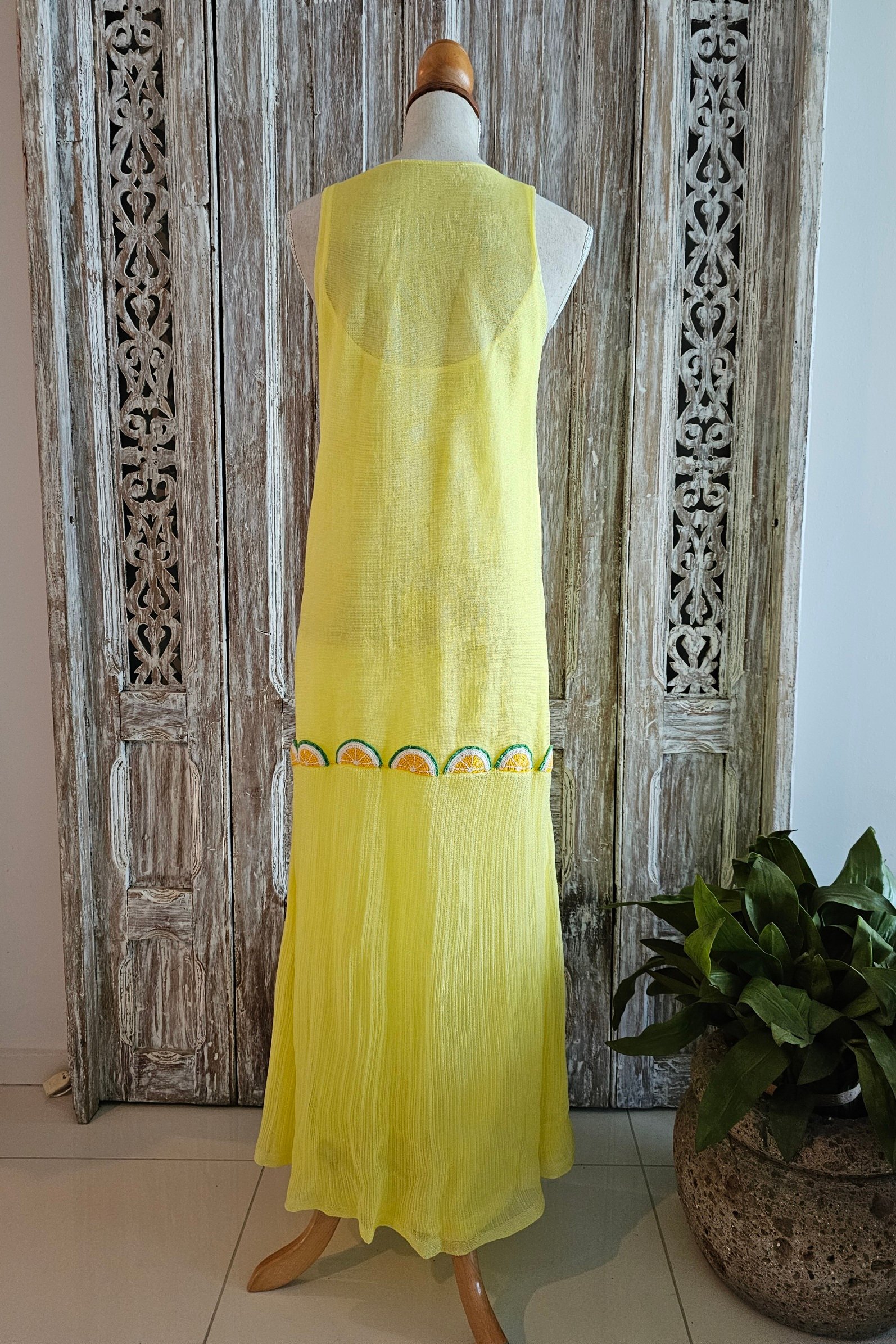 Vestido largo tejido con combinacion . Tejido de medios limones