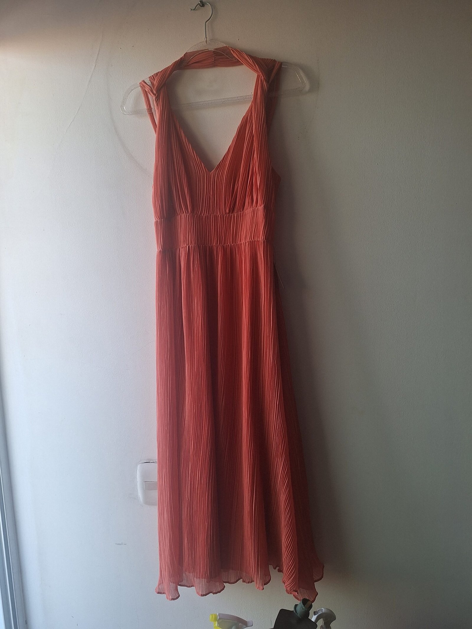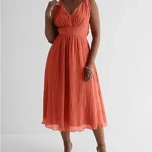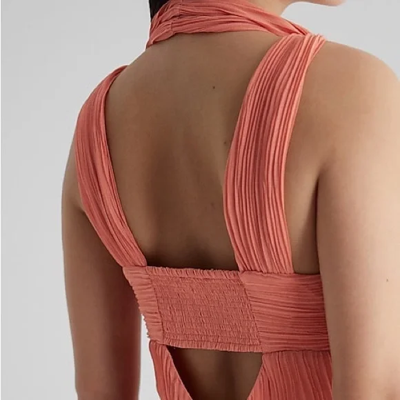 Vestido midi plisado,marca express, con etiqueta, de gasa presenta un tirante halter retorcido junto con los tirantes para mayor comodidad y sujeción. Con una llamativa abertura en la espalda, este vestido es perfecto para una fiesta, bautizo, boda, cita.