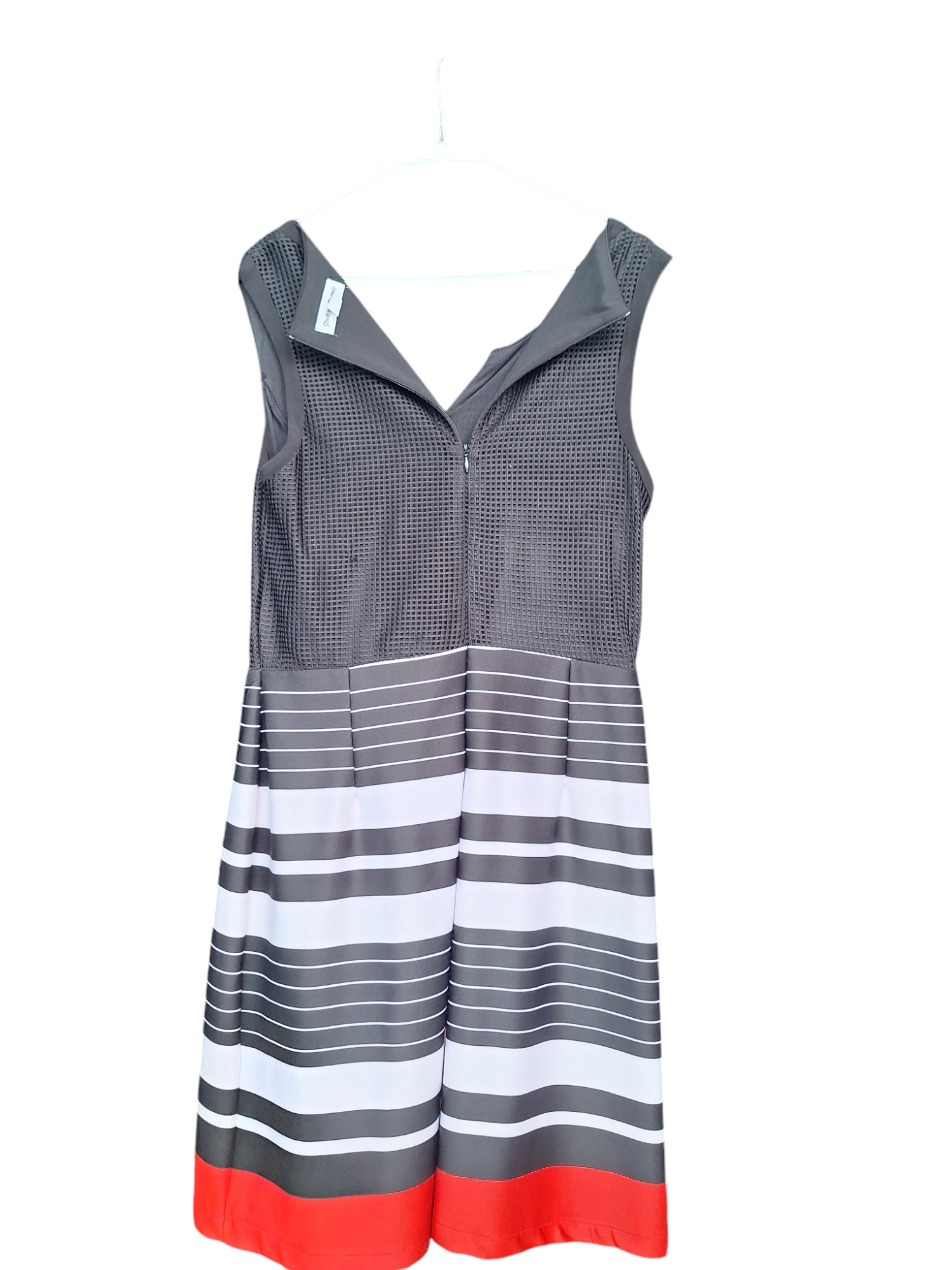 Vestido corto, sin manga, con zipper funcional, talla 14 (L) Material no estirable.