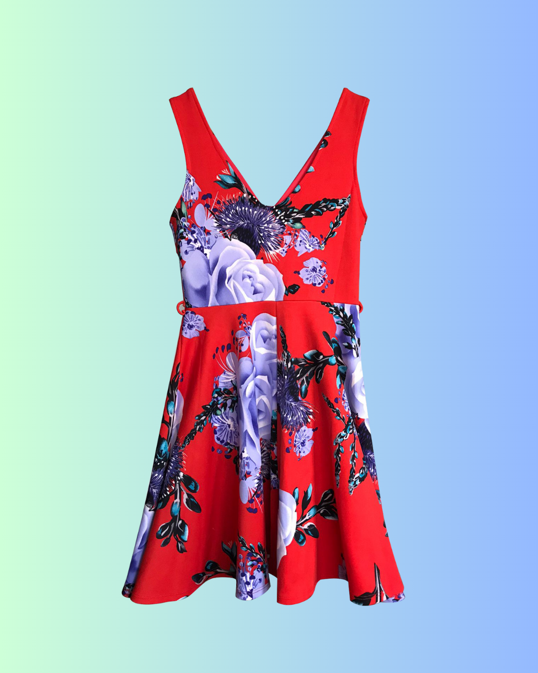 Vestido rojo con estampado de flores. Material: 92% Polyester, 8% Spandex.