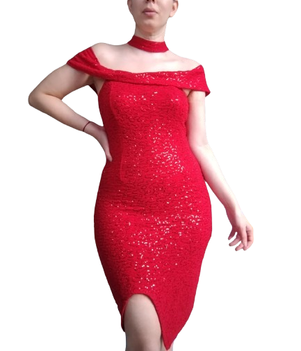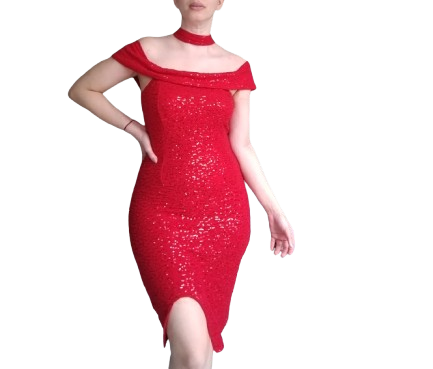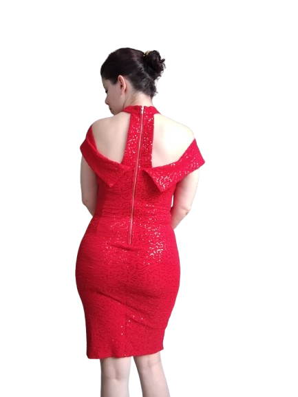 Vestido rojo de lentejuelas del mismo color, ideal para eventos de noche y de fin de año.