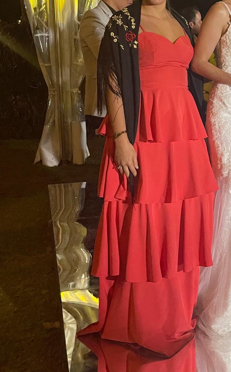 VESTIDO SEMI - FORMAL ACAMPANADO CORAL cantidad