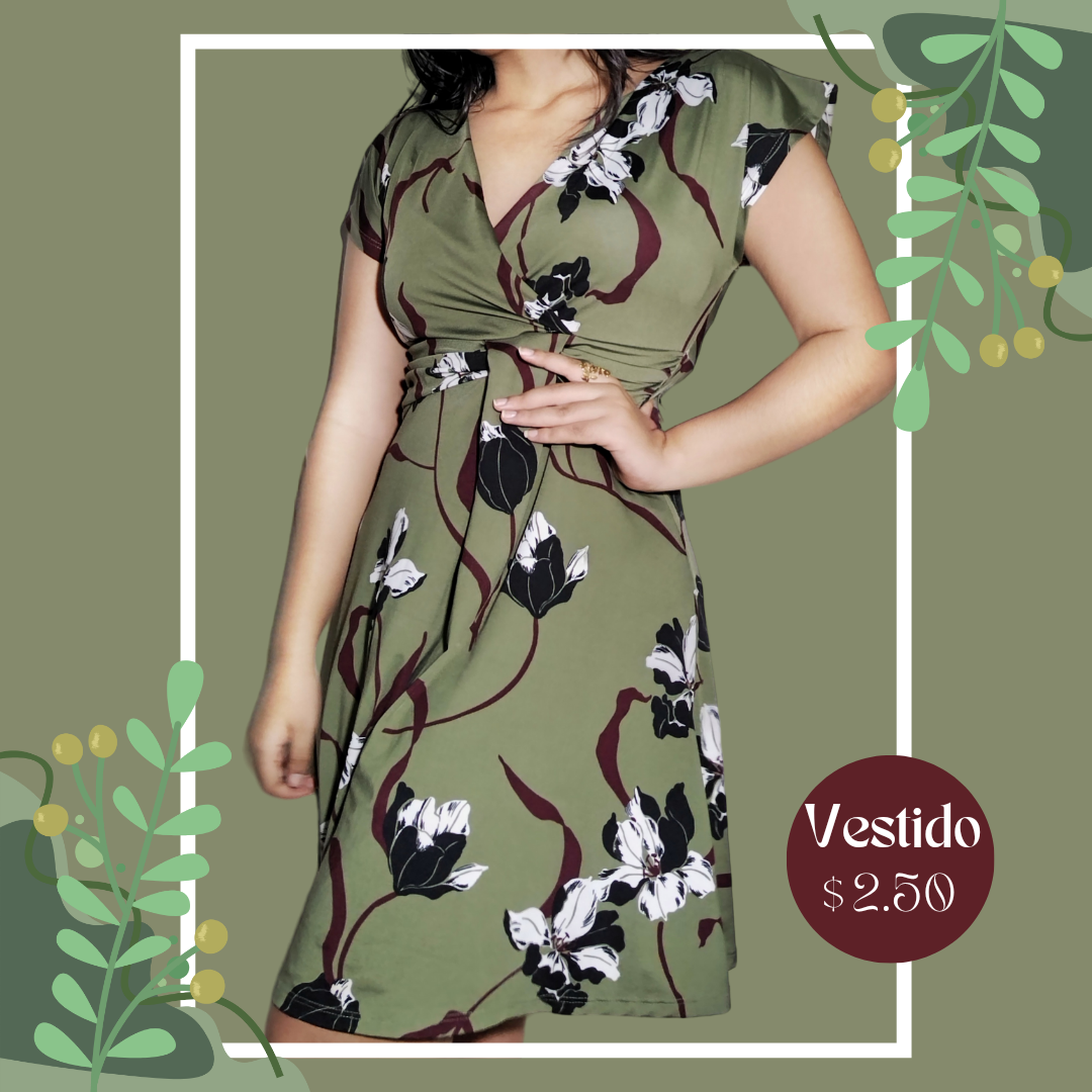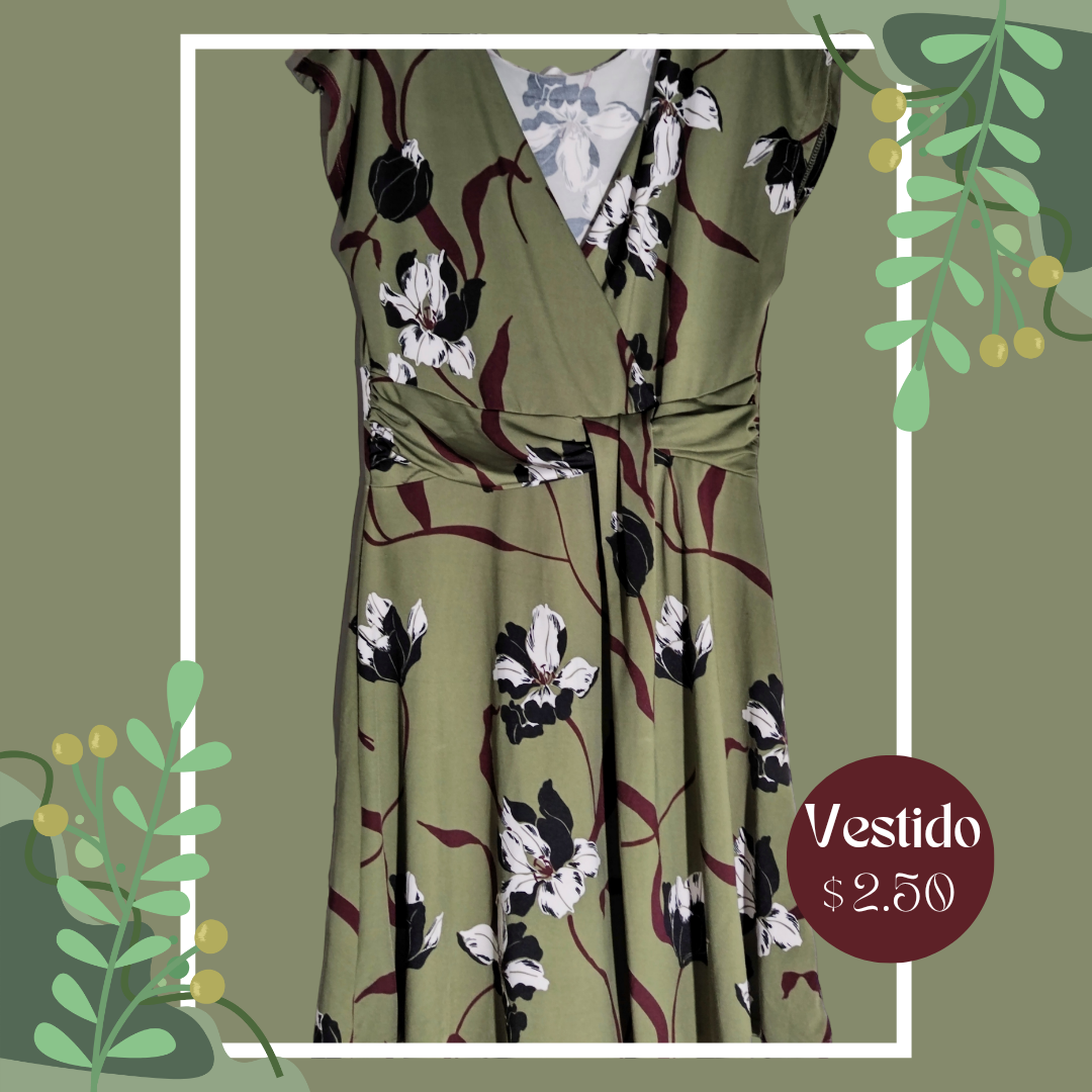 Vestido verde con estampado de flores cantidad