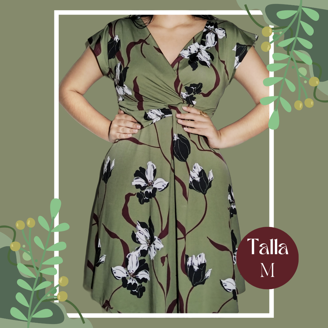 Vestido verde con estampado de flores