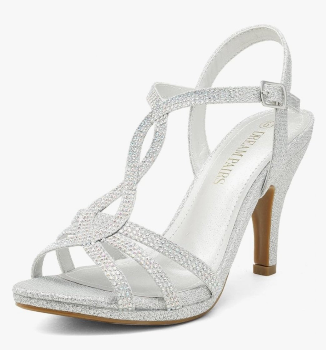 Zapatos Dream Pairs silver glitters, estilo Cenicienta de tiras y tacón medio 7cm, plataforma: 0,63 cm, suela de goma y plantilla de piel sintética ligeramente acolchada