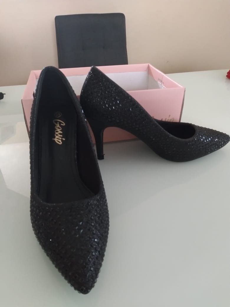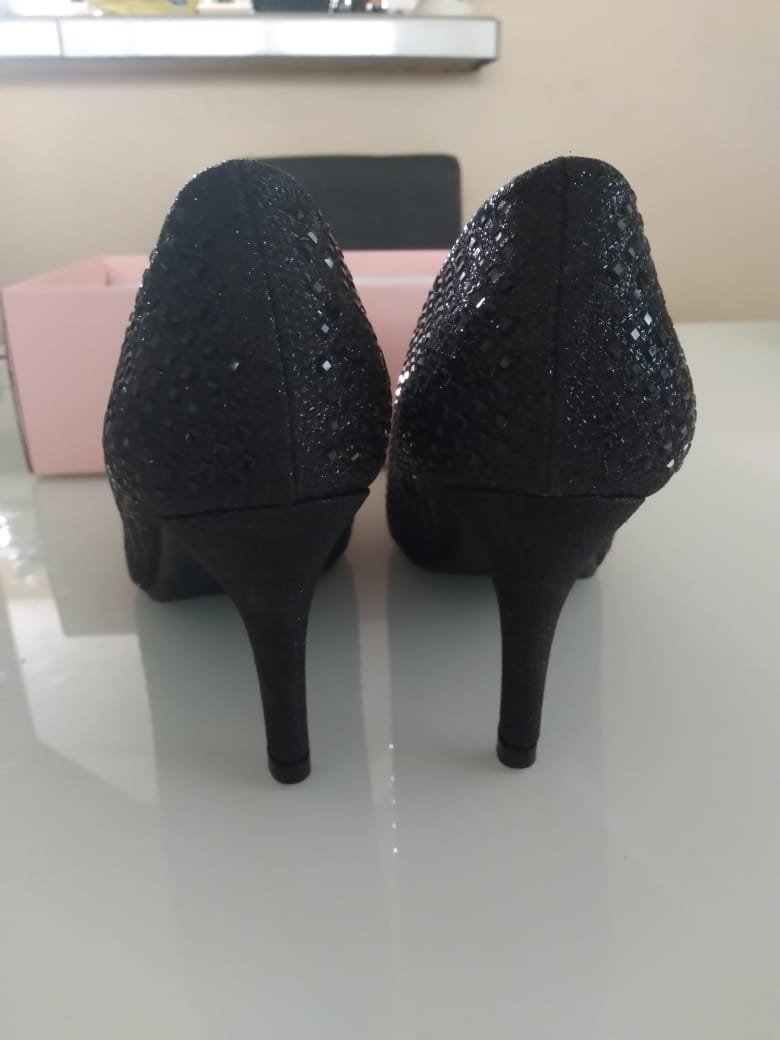 Zapatos de mujer talla 39. Los zapatos solo fueron probados. Vienen con 2 chapitas de repuesto. Para fiestas o para evento.