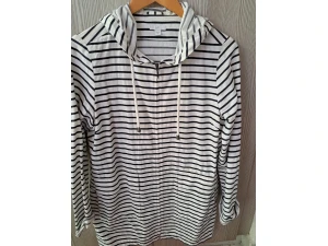 Vestido de oficina color crema con lineas delgadas color blanco, forro interno, poco uso Talla 10