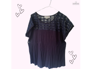 Blusa Azul Talla Large (L) Marca: Carol Rose Material: 95% rayón, 5% spandex (cuerpo) Contraste: 100% poliéster Características: Manga corta Diseño de cuadros tipo malla en la parte superior Esta blusa ofrece un estilo fresco y elegante, con un detalle de malla que aporta un toque distintivo. Ideal para un look semiformal.