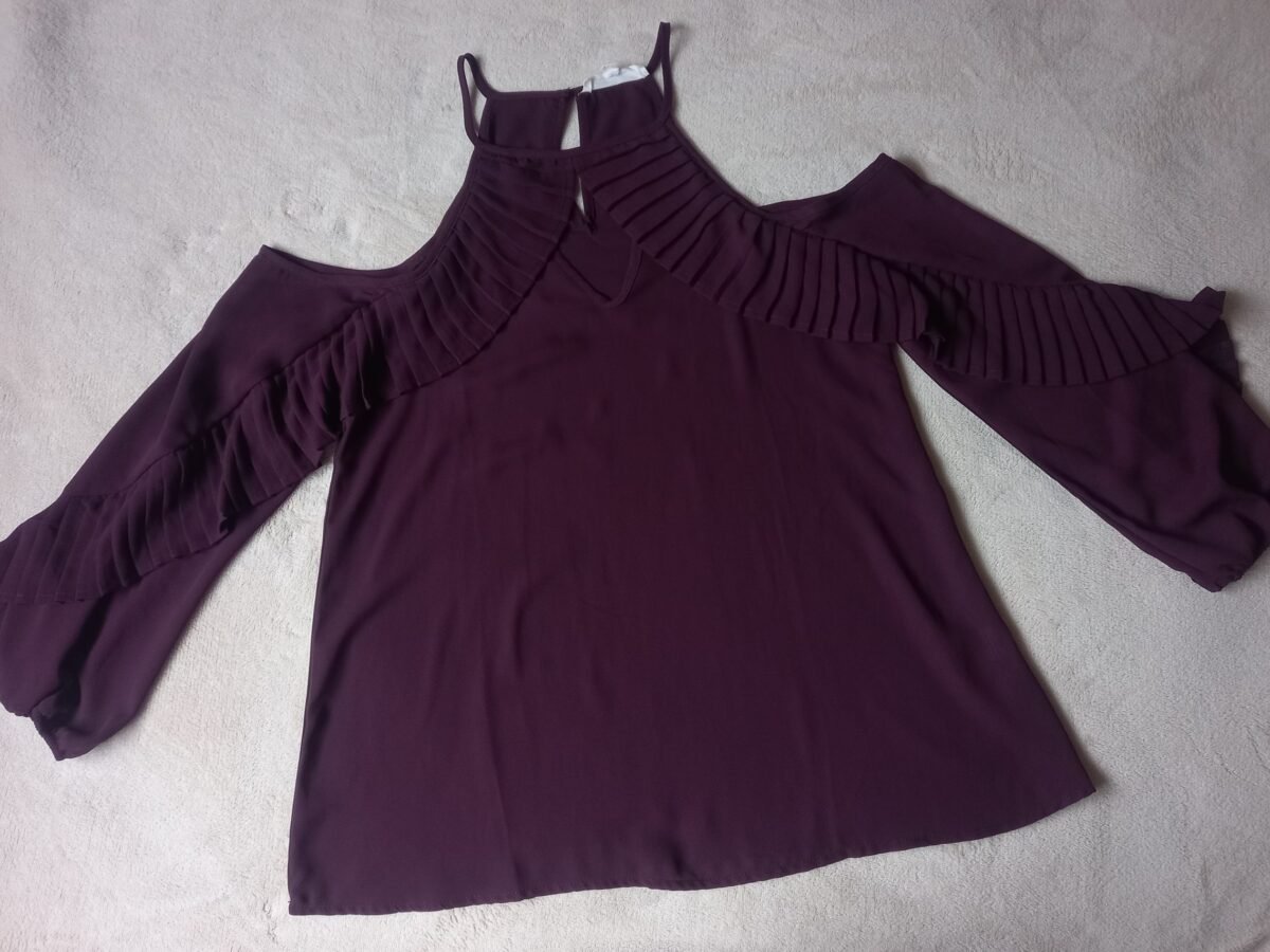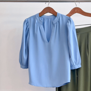 Blusa celeste con estampado de cactus, lazo en la parte de al frente y con mangas elásticas Talla 6 Medidas: Hombro: 40cm Mangas: 48cm largo, ancho: 15cm Largo: 60cm