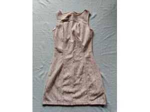 Hermoso mini vestido rosa con detalles de encajes florales, en la espalda tiene una pequeña apertura. Lindo entalle para resaltar la cintura.