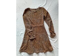 Coqueto Mini vestido Animal Print, tela suave y acampanada (usado una sola vez).