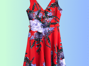 Vestido rojo con estampado de flores. Material: 92% Polyester, 8% Spandex.