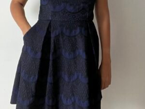 Vestido tipo cóctel azul marino utilizado una sola vez