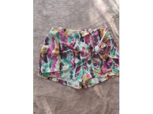 Pantalón corto estampado de colores con detalle de lazo en la parte frontal,
