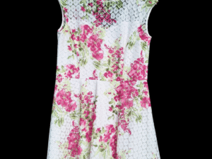Vestido floral, manga corta, con zipper, talla 12 (L) Material no estirable.