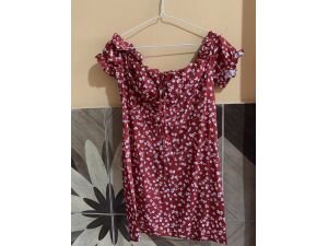 Vestido corto rojo con estampado de flores blancas, nuevo, en perfecto estado y sin usar.