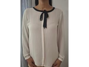 Blusa de Polyester, elegante y fresca semi transparente con detalle de lazo en el cuello.